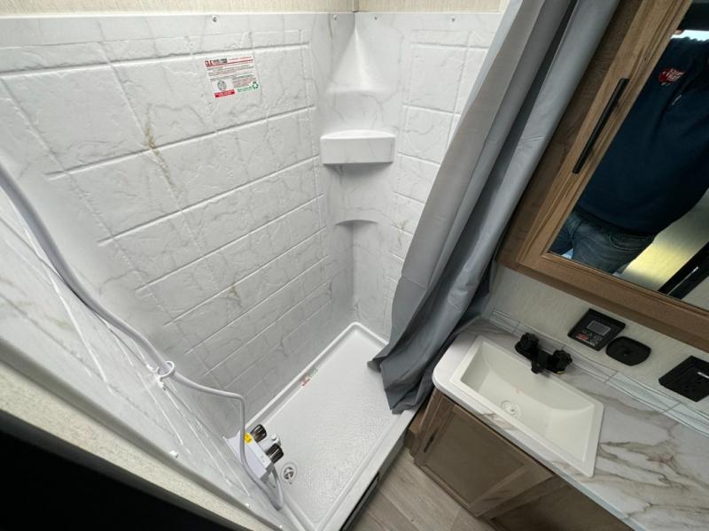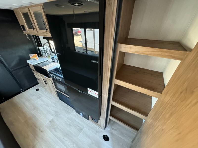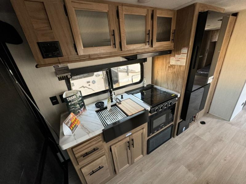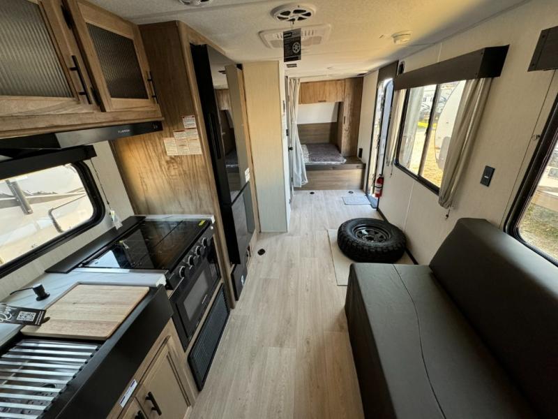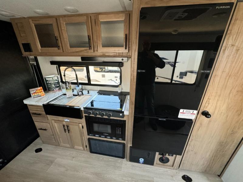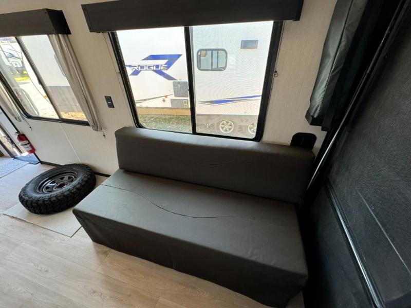 - Key Features: Ramp-door patio with sofa, removable table, 10 cu ft residential fridge, convection microwave/air-fryer, fireplace option, solar thermo-glass, high-capacity air con, tankless water heater, base-camp & limited packages, dual LP tanks, backup-camera prep