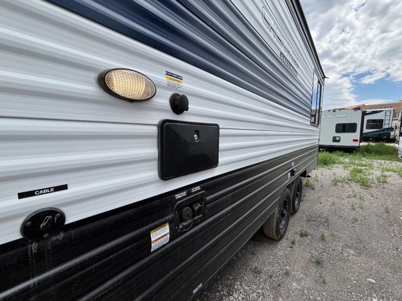 Whether it's a journey that will take you to new locations or a tried-and-true getaway to that favorite and memorable destination, the Forest River Cherokee Grey Wolf travel trailers and toy haulers are going to make the trip worth it every single time! You can travel in confidence with the premium wheel package, seamless roofing membrane with heat reflectivity, Power Gear frame technology with space-saver rail design, and Cherokee back-up camera system. The Cherokee Grey Wolf's interior is highly attractive with its stainless steel kitchen suite package and premium bedding ensemble and comforter. You will also find a black waste tank flush-out kit, an outside shower with hot and cold water, an armored underbelly tank enclosure, and an RV grill quick connect.