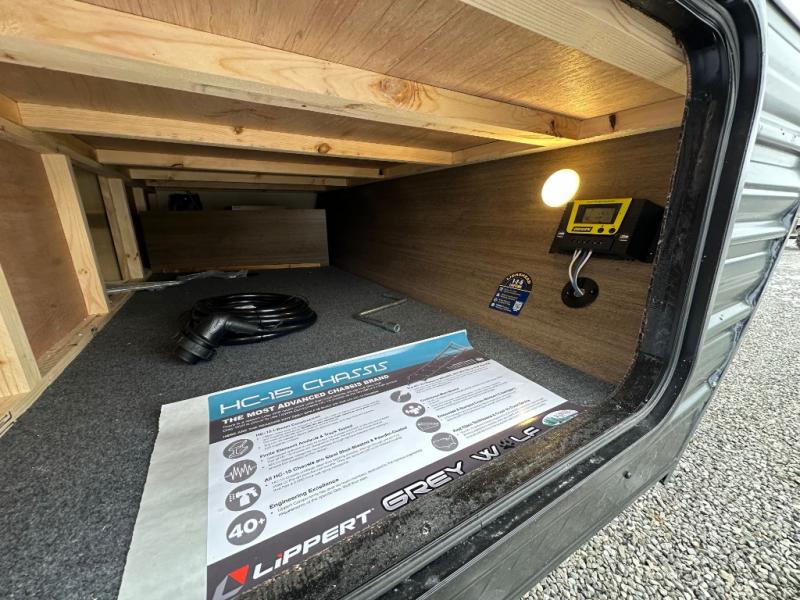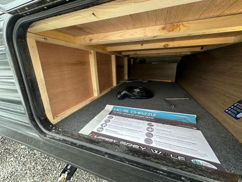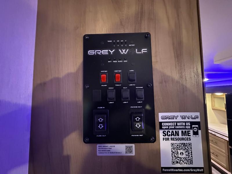 Whether it's a journey that will take you to new locations or a tried-and-true getaway to that favorite and memorable destination, the Forest River Cherokee Grey Wolf travel trailers and toy haulers are going to make the trip worth it every single time! You can travel in confidence with the premium wheel package, seamless roofing membrane with heat reflectivity, Power Gear frame technology with space-saver rail design, and Cherokee back-up camera system. The Cherokee Grey Wolf's interior is highly attractive with its stainless steel kitchen suite package and premium bedding ensemble and comforter, and 8" ceiling-mounted subwoofer with accent lighting. You will also find a black waste tank flush-out kit, an outside shower with hot and cold water, an armored underbelly tank enclosure, and an RV grill quick connect.