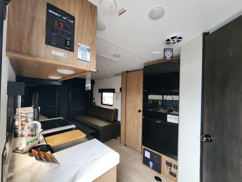 Whether it's a journey that will take you to new locations or a tried-and-true getaway to that favorite and memorable destination, the Forest River Cherokee Grey Wolf travel trailers and toy haulers are going to make the trip worth it every single time! You can travel in confidence with the premium wheel package, seamless roofing membrane with heat reflectivity, Power Gear frame technology with space-saver rail design, and Cherokee back-up camera system. The Cherokee Grey Wolf's interior is highly attractive with its stainless steel kitchen suite package, and premium bedding ensemble and comforter. You will also find a black waste tank flush-out kit, an outside shower with hot and cold water, an armored underbelly tank enclosure, and an RV grill quick connect.