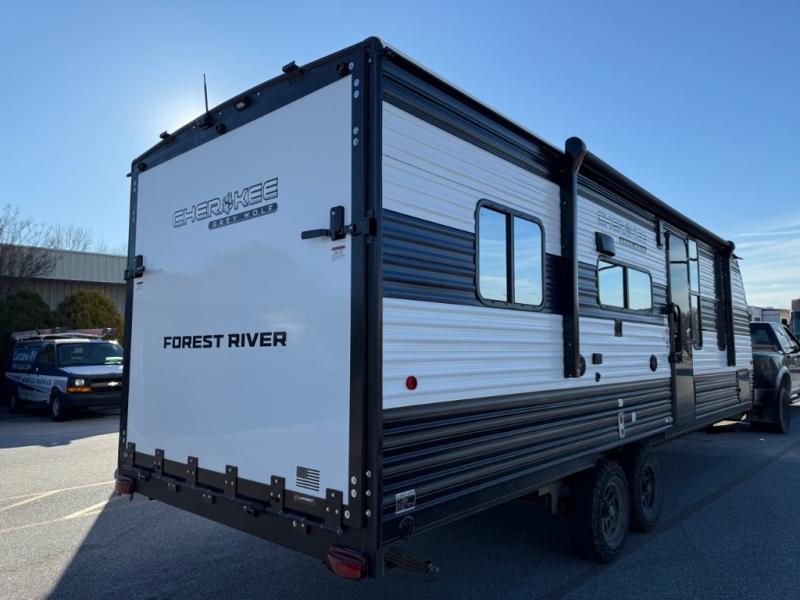 Whether it's a journey that will take you to new locations or a tried-and-true getaway to that favorite and memorable destination, the Forest River Cherokee Grey Wolf travel trailers and toy haulers are going to make the trip worth it every single time! You can travel in confidence with the premium wheel package, seamless roofing membrane with heat reflectivity, Power Gear frame technology with space-saver rail design, and Cherokee back-up camera system. The Cherokee Grey Wolf's interior is highly attractive with its stainless steel kitchen suite package, and premium bedding ensemble and comforter. You will also find a black waste tank flush-out kit, an outside shower with hot and cold water, an armored underbelly tank enclosure, and an RV grill quick connect.