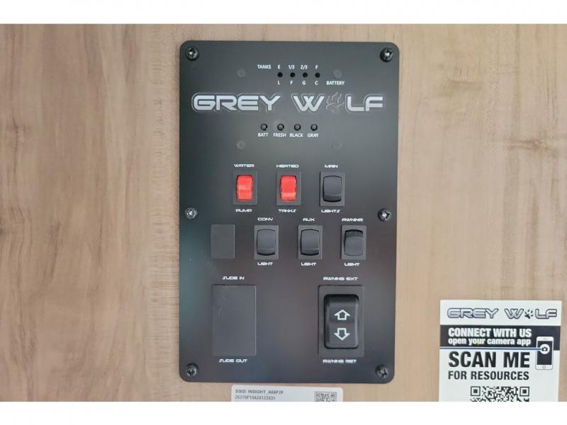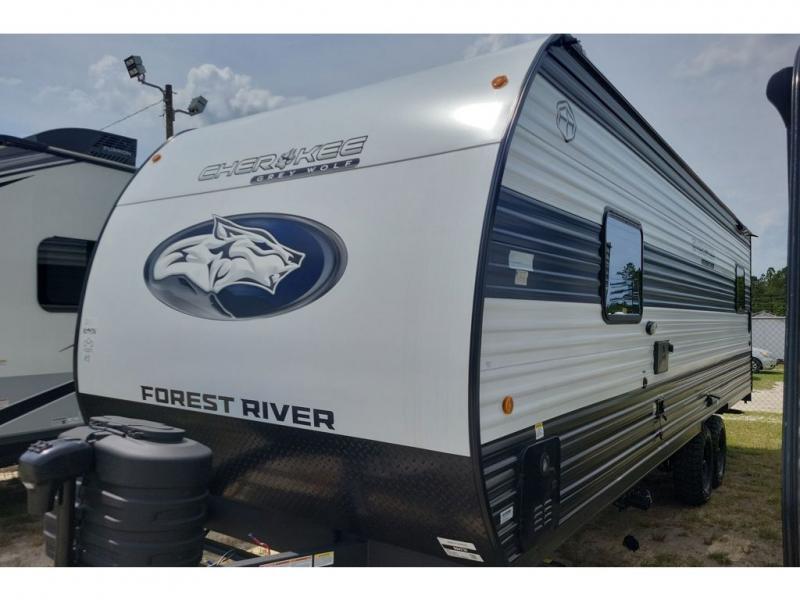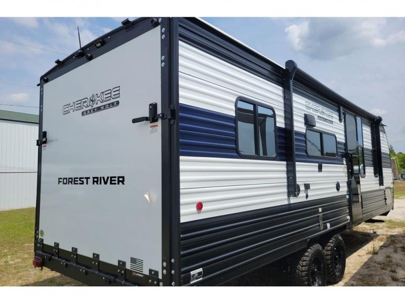 Whether it's a journey that will take you to new locations or a tried-and-true getaway to that favorite and memorable destination, the Forest River Cherokee Grey Wolf travel trailers and toy haulers are going to make the trip worth it every single time! You can travel in confidence with the premium wheel package, seamless roofing membrane with heat reflectivity, Power Gear frame technology with space-saver rail design, and Cherokee back-up camera system. The Cherokee Grey Wolf's interior is highly attractive with its stainless steel kitchen suite package, and premium bedding ensemble and comforter. You will also find a black waste tank flush-out kit, an outside shower with hot and cold water, an armored underbelly tank enclosure, and an RV grill quick connect.