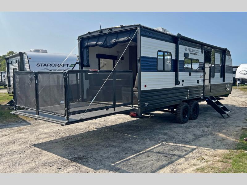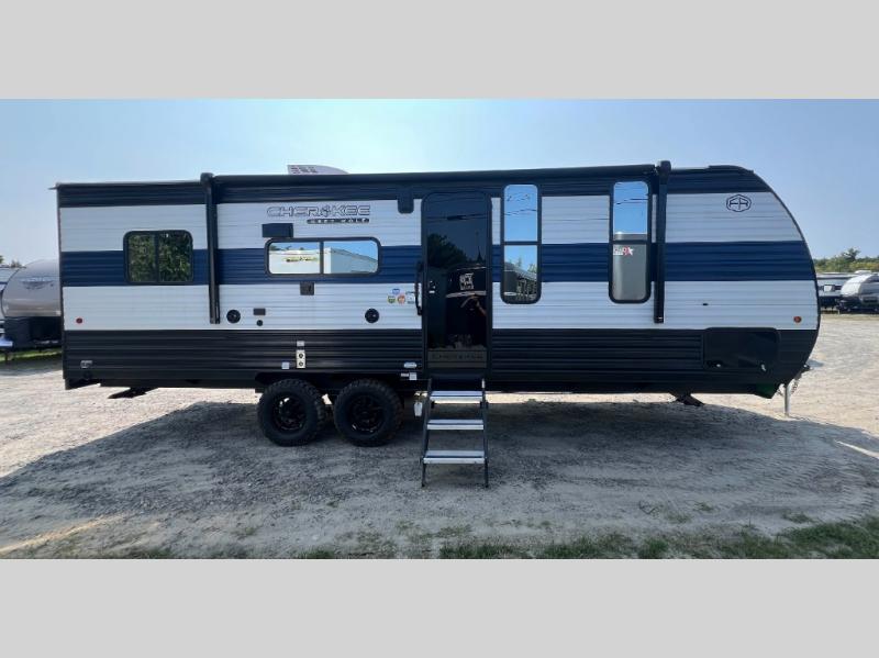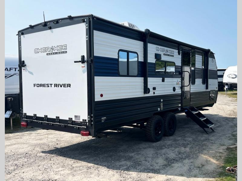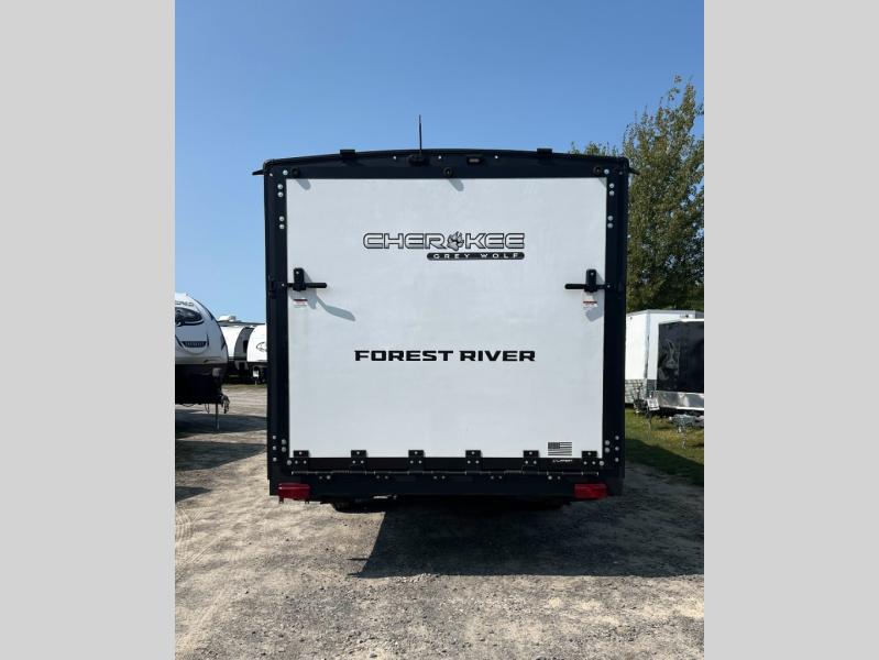 Whether it's a journey that will take you to new locations or a tried-and-true getaway to that favorite and memorable destination, the Forest River Cherokee Grey Wolf travel trailers and toy haulers are going to make the trip worth it every single time! You can travel in confidence with the premium wheel package, seamless roofing membrane with heat reflectivity, Power Gear frame technology with space-saver rail design, and Cherokee back-up camera system. The Cherokee Grey Wolf's interior is highly attractive with its stainless steel kitchen suite package, and premium bedding ensemble and comforter. You will also find a black waste tank flush-out kit, an outside shower with hot and cold water, an armored underbelly tank enclosure, and an RV grill quick connect.