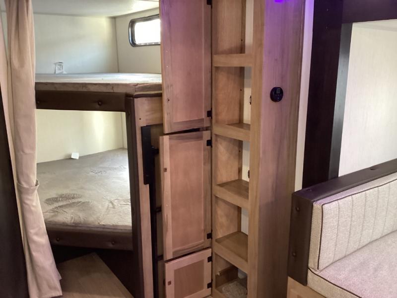 The Cherokee Grey Wolf 23DBH is designed to make travel simple and exciting. The double rear bunks keep the kids or guests comfortable, while the slide-out opens up a spacious living area perfect for relaxing after a day outdoors. A private front queen bedroom gives you your own retreat, and the U-shaped dinette converts easily for extra sleeping space when friends join the fun.