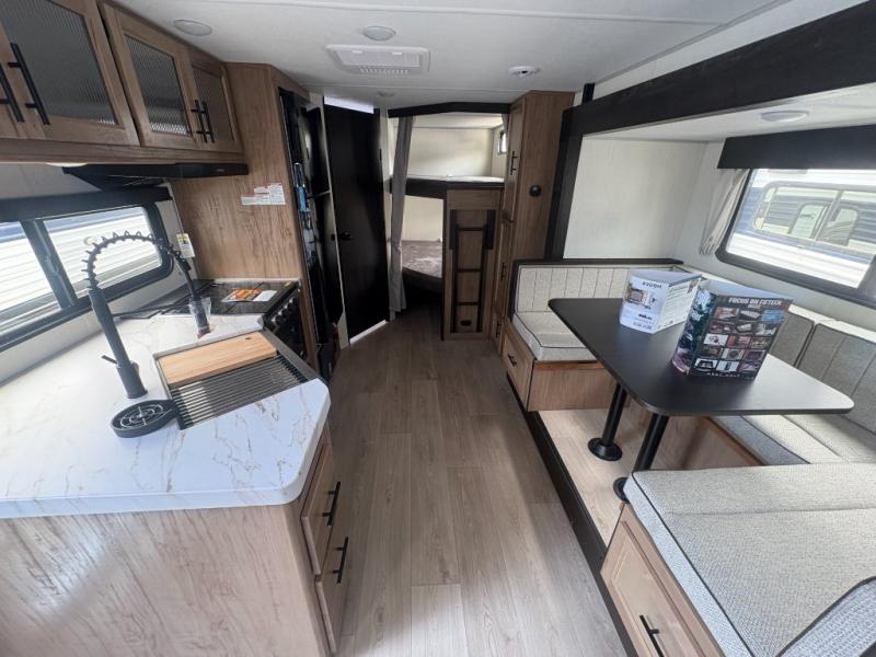 Sleeping Capacity: Designed to sleep up to 8 people, the 23DBH features a queen bed in the master suite, double over double bunks in the rear, and a U-shaped dinette that converts into additional sleeping space.