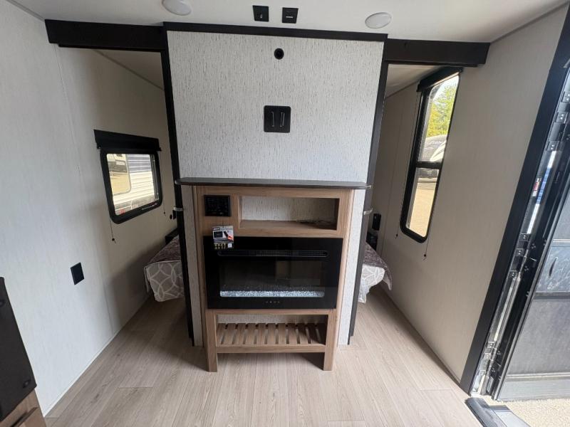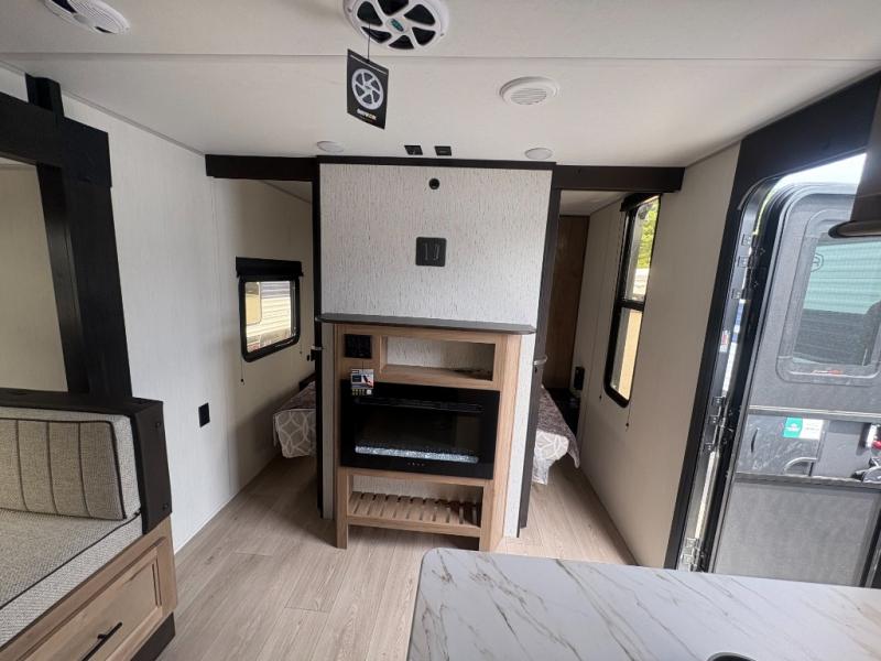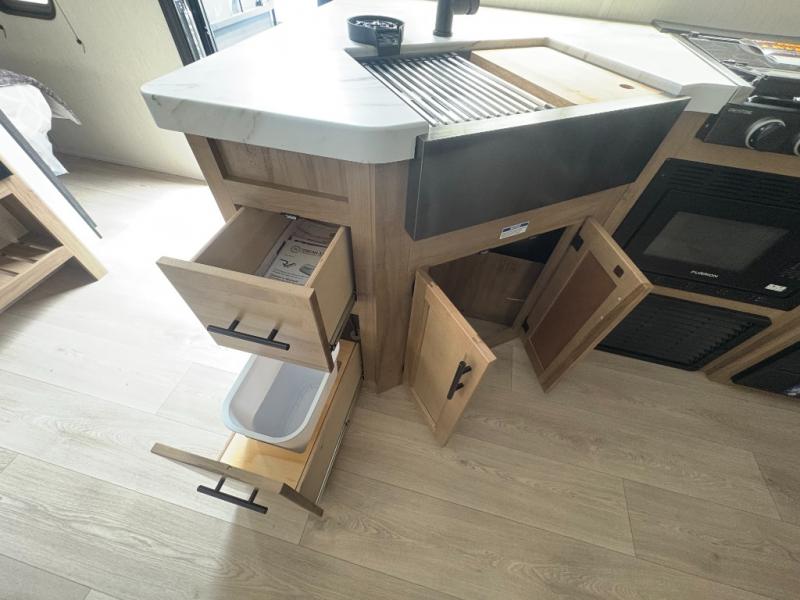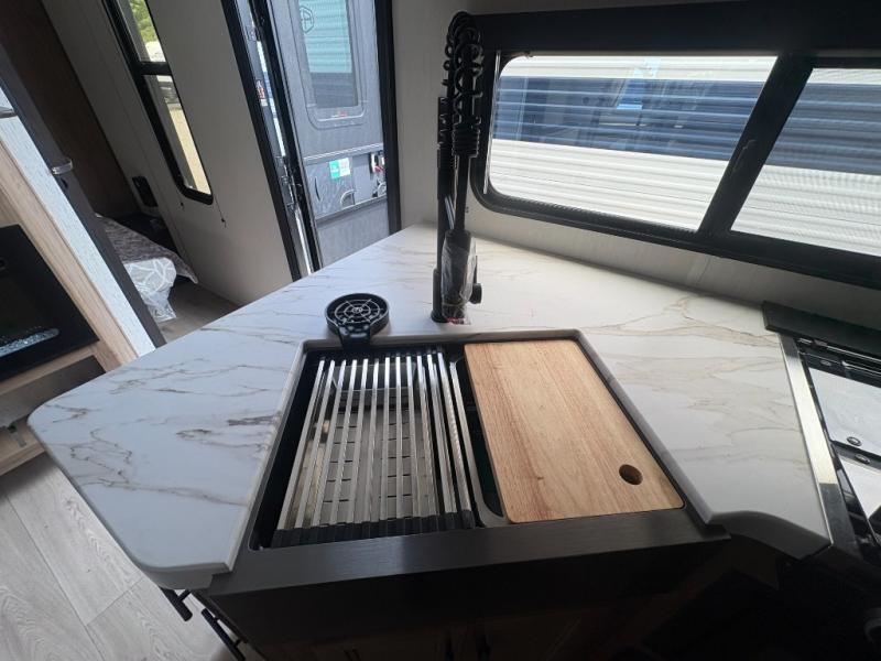 Modern Amenities: With features like a high-efficiency refrigerator, tankless water heater, and outdoor kitchen, the 23DBH offers the comforts of home while on the road.