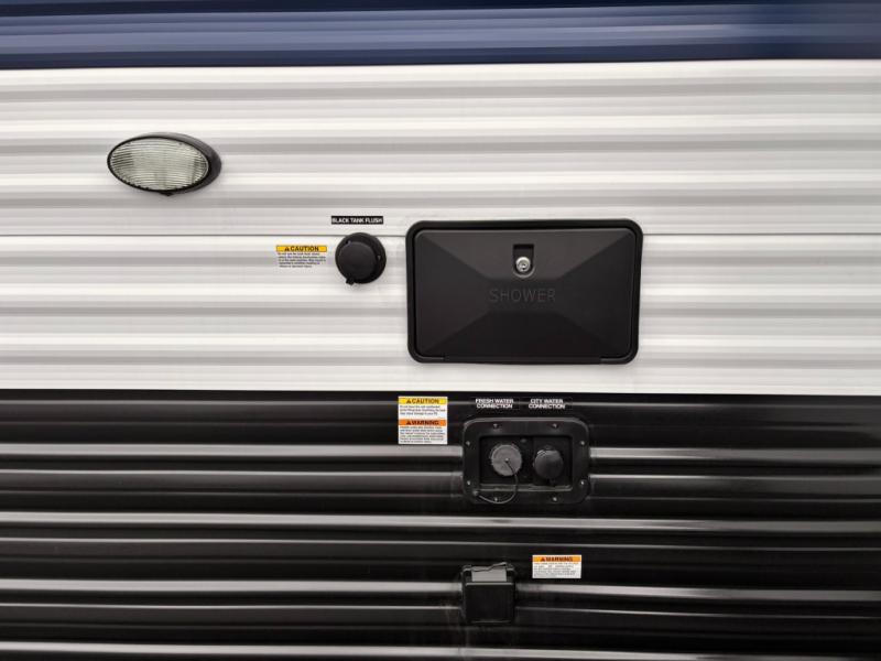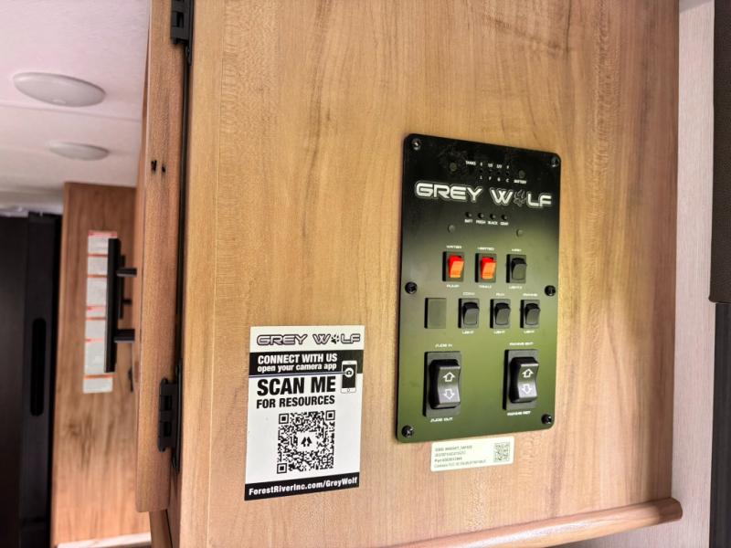 Whether it's a journey that will take you to new locations or a tried-and-true getaway to that favorite and memorable destination, the Forest River Cherokee Grey Wolf travel trailers and toy haulers are going to make the trip worth it every single time! You can travel in confidence with the premium wheel package, seamless roofing membrane with heat reflectivity, Power Gear frame technology with space-saver rail design, and Cherokee back-up camera system. The Cherokee Grey Wolf's interior is highly attractive with its stainless steel kitchen suite package and premium bedding ensemble and comforter. You will also find a black waste tank flush-out kit, an outside shower with hot and cold water, an armored underbelly tank enclosure, and an RV grill quick connect.