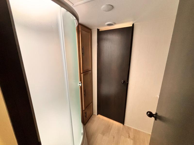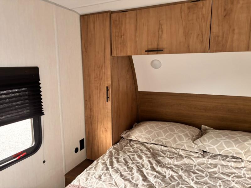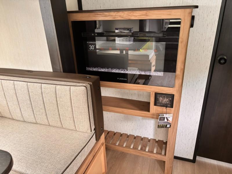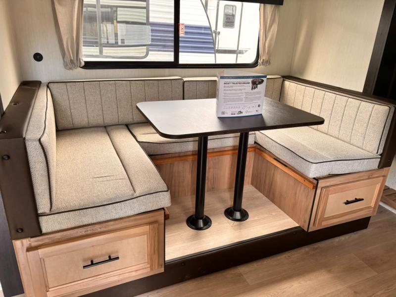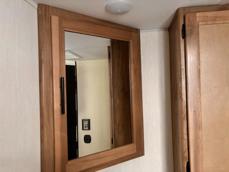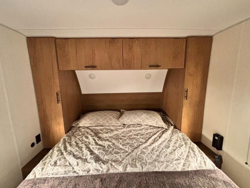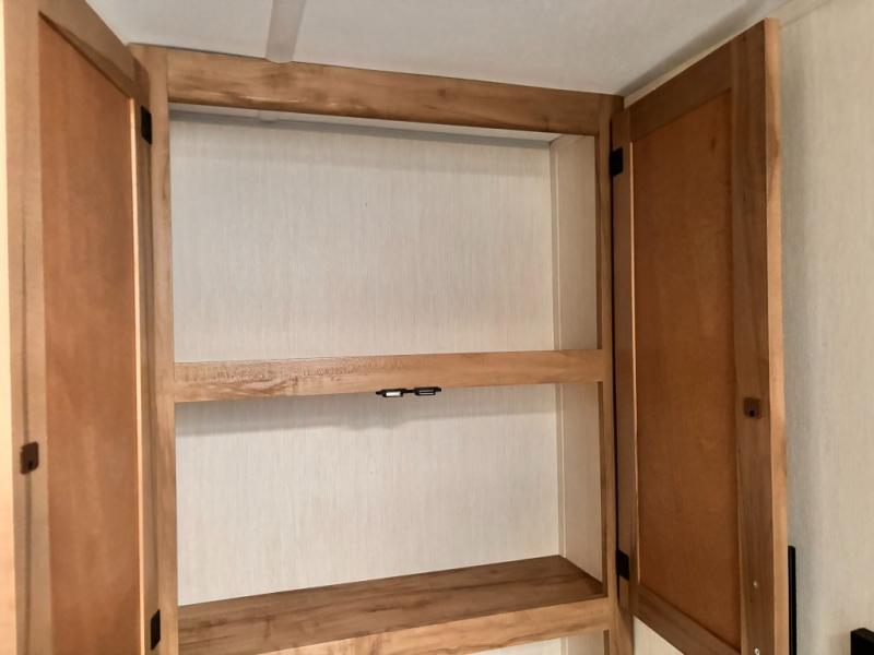 This Cherokee Grey Wolf travel trailer is perfect for your small family and will leave you planning your next outing before you are back from your current weekend away! You will find all of the comforts you need with plenty of livable space including a U-shaped dinette slide. There is also a sofa for more seating when company arrives, and there are end tables on either side to prevent spills. A spacious walk-through bath leads to a front private bedroom where you will enjoy a great night's rest on a comfortable RV king bed. You will find ample storage for clothing in the wardrobes that are above handy nightstands for your personal things. There are even lights mounted above the bed on each side which makes it easy to read a couple of chapters before drifting off to sleep.