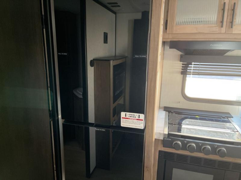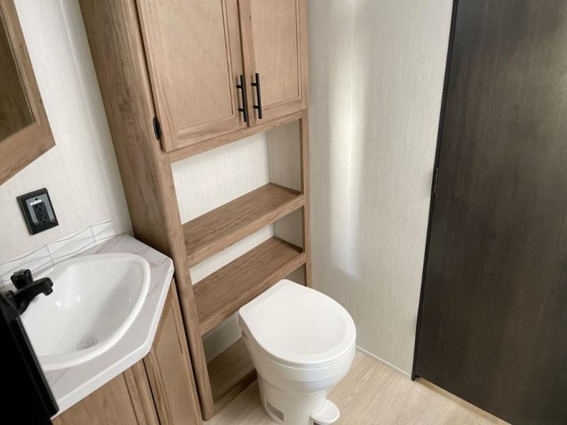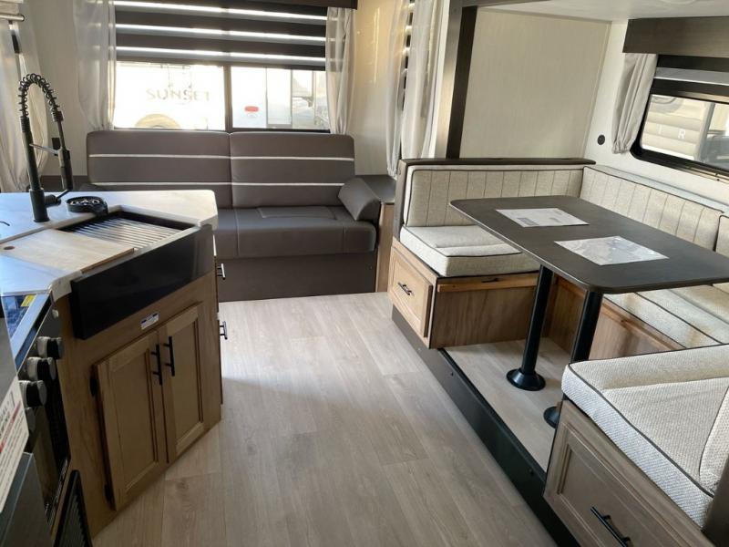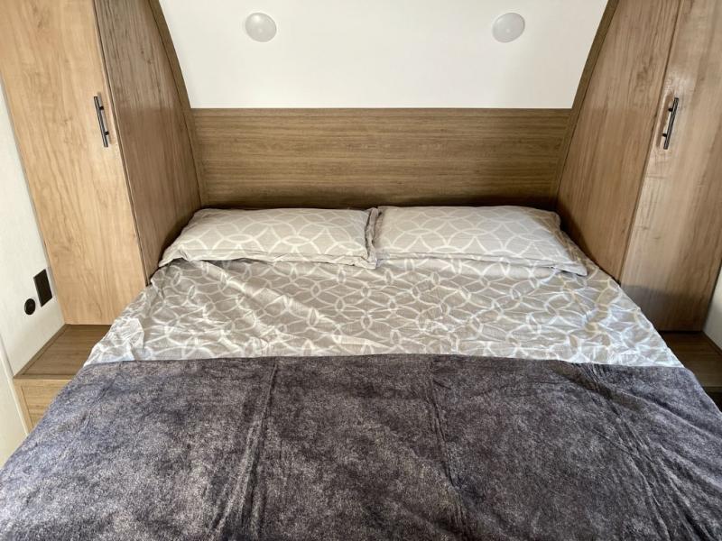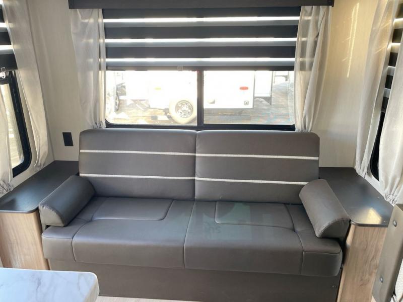 This Cherokee Grey Wolf travel trailer is perfect for your small family and will leave you planning your next outing before you are back from your current weekend away! You will find all of the comforts you need with plenty of livable space including a U-shaped dinette slide. There is also a sofa for more seating when company arrives, and there are end tables on either side to prevent spills. A spacious walk-through bath leads to a front private bedroom where you will enjoy a great night's rest on a comfortable RV king bed. You will find ample storage for clothing in the wardrobes that are above handy nightstands for your personal things. There are even lights mounted above the bed on each side which makes it easy to read a couple of chapters before drifting off to sleep.