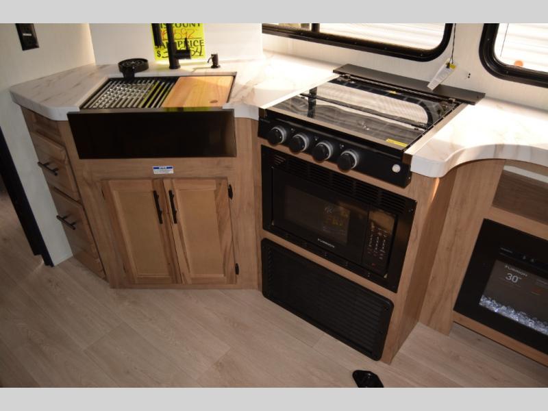 Whether it's a journey that will take you to new locations or a tried-and-true getaway to that favorite and memorable destination, the Forest River Cherokee Grey Wolf travel trailers and toy haulers are going to make the trip worth it every single time! You can travel in confidence with the premium wheel package, seamless roofing membrane with heat reflectivity, Power Gear frame technology with space-saver rail design, and Cherokee back-up camera system. The Cherokee Grey Wolf's interior is highly attractive with its stainless steel kitchen suite package and premium bedding ensemble and comforter. You will also find a black waste tank flush-out kit, an outside shower with hot and cold water, an armored underbelly tank enclosure, and an RV grill quick connect.