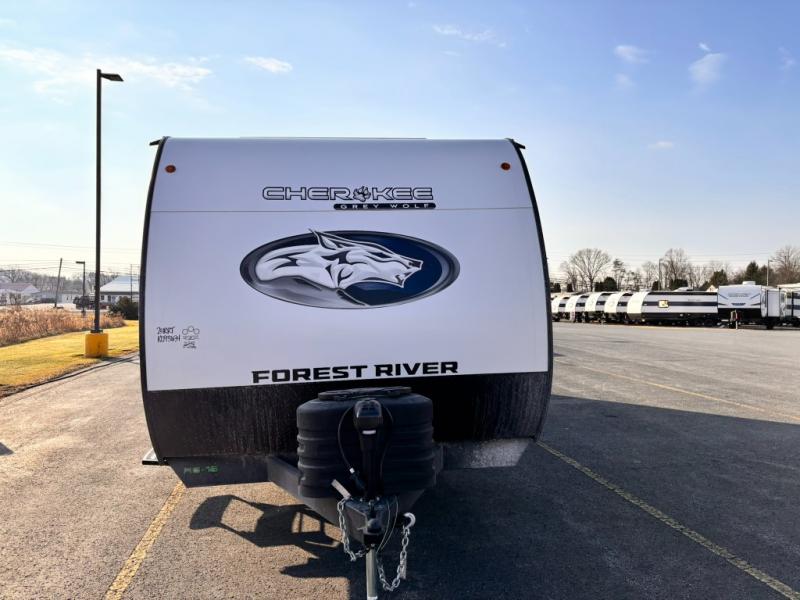 Whether it's a journey that will take you to new locations or a tried-and-true getaway to that favorite and memorable destination, the Forest River Cherokee Grey Wolf travel trailers and toy haulers are going to make the trip worth it every single time! You can travel in confidence with the premium wheel package, seamless roofing membrane with heat reflectivity, Power Gear frame technology with space-saver rail design, and Cherokee back-up camera system. The Cherokee Grey Wolf's interior is highly attractive with its stainless steel kitchen suite package and premium bedding ensemble and comforter. You will also find a black waste tank flush-out kit, an outside shower with hot and cold water, an armored underbelly tank enclosure, and an RV grill quick connect.