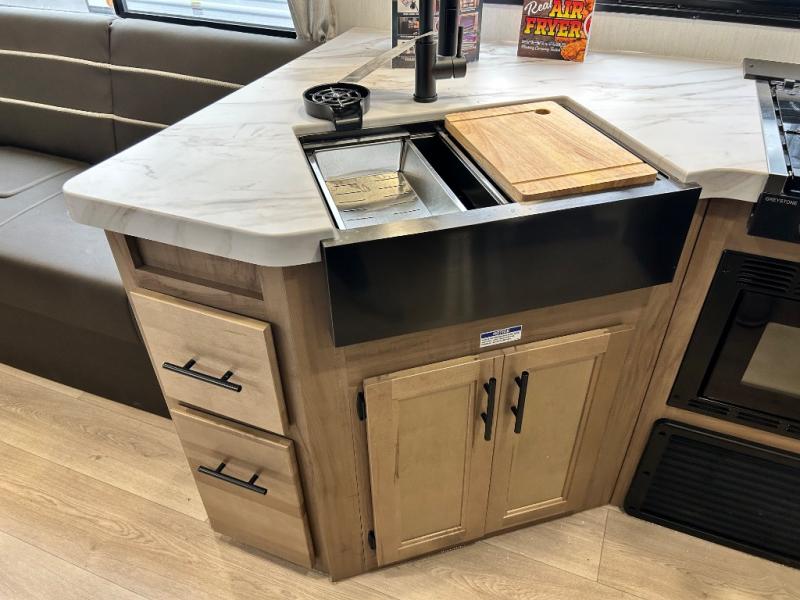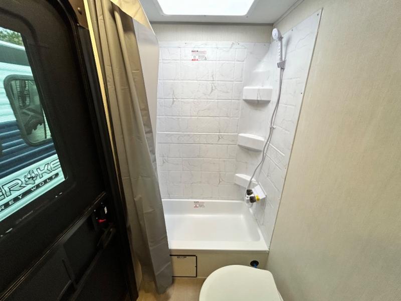 Whether it's a journey that will take you to new locations or a tried-and-true getaway to that favorite and memorable destination, the Forest River Cherokee Grey Wolf travel trailers and toy haulers are going to make the trip worth it every single time! You can travel in confidence with the premium wheel package, seamless roofing membrane with heat reflectivity, Power Gear frame technology with space-saver rail design, and Cherokee back-up camera system. The Cherokee Grey Wolf's interior is highly attractive with its stainless steel kitchen suite package and premium bedding ensemble and comforter. You will also find a black waste tank flush-out kit, an outside shower with hot and cold water, an armored underbelly tank enclosure, and an RV grill quick connect.