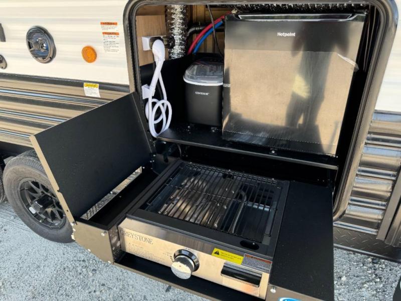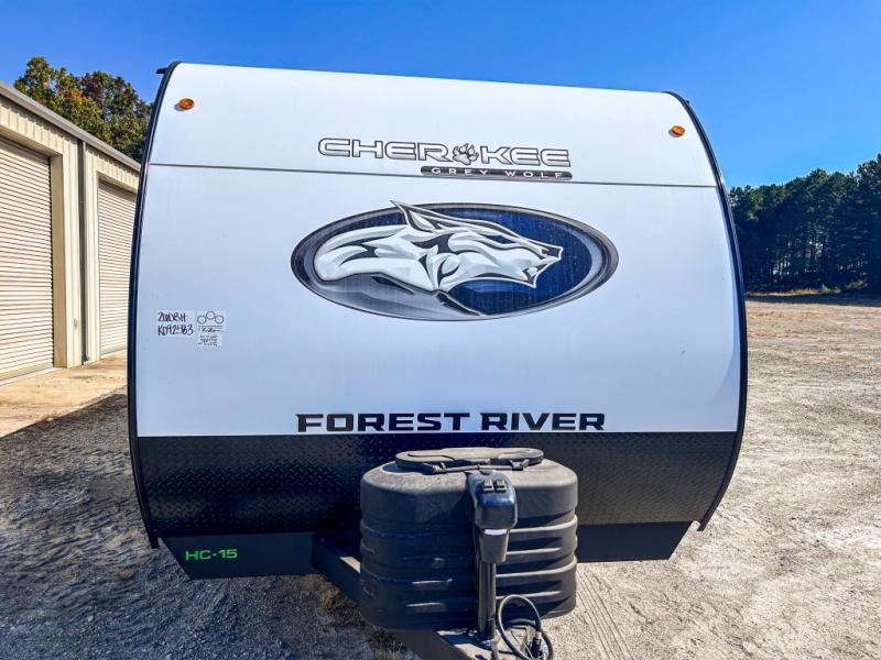Whether it's a journey that will take you to new locations or a tried-and-true getaway to that favorite and memorable destination, the Forest River Cherokee Grey Wolf travel trailers and toy haulers are going to make the trip worth it every single time! You can travel in confidence with the premium wheel package, seamless roofing membrane with heat reflectivity, Power Gear frame technology with space-saver rail design, and Cherokee back-up camera system. The Cherokee Grey Wolf's interior is highly attractive with its stainless steel kitchen suite package and premium bedding ensemble and comforter. You will also find a black waste tank flush-out kit, an outside shower with hot and cold water, an armored underbelly tank enclosure, and an RV grill quick connect.