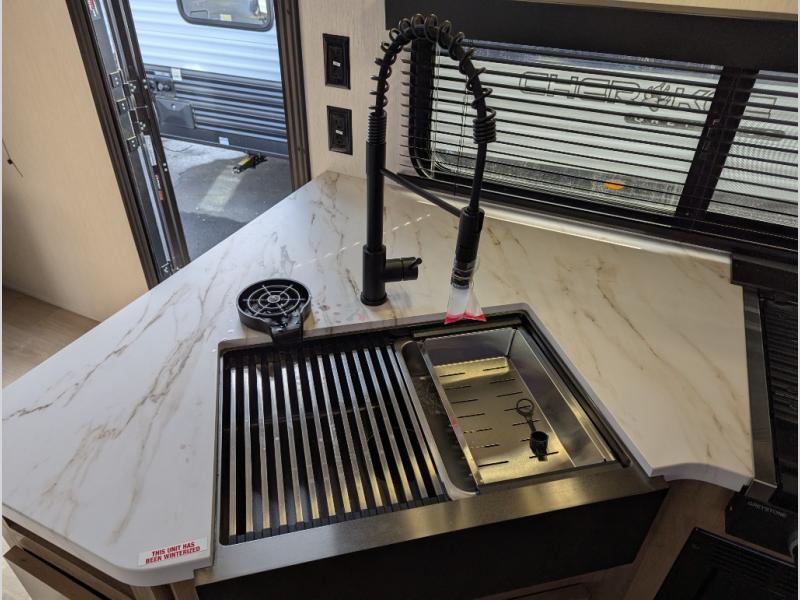 Whether it's a journey that will take you to new locations or a tried-and-true getaway to that favorite and memorable destination, the Forest River Cherokee Grey Wolf travel trailers and toy haulers are going to make the trip worth it every single time! You can travel in confidence with the premium wheel package, seamless roofing membrane with heat reflectivity, Power Gear frame technology with space-saver rail design, and Cherokee back-up camera system. The Cherokee Grey Wolf's interior is highly attractive with its stainless steel kitchen suite package and premium bedding ensemble and comforter. You will also find a black waste tank flush-out kit, an outside shower with hot and cold water, an armored underbelly tank enclosure, and an RV grill quick connect.