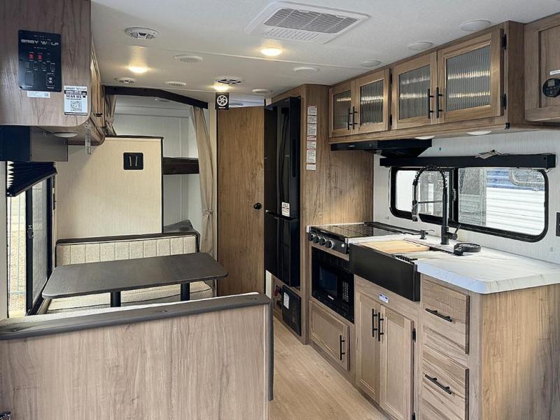 Whether it's a journey that will take you to new locations or a tried-and-true getaway to that favorite and memorable destination, the Forest River Cherokee Grey Wolf travel trailers and toy haulers are going to make the trip worth it every single time! You can travel in confidence with the premium wheel package, seamless roofing membrane with heat reflectivity, Power Gear frame technology with space-saver rail design, and Cherokee back-up camera system. The Cherokee Grey Wolf's interior is highly attractive with its stainless steel kitchen suite package and premium bedding ensemble and comforter. You will also find a black waste tank flush-out kit, an outside shower with hot and cold water, an armored underbelly tank enclosure, and an RV grill quick connect.