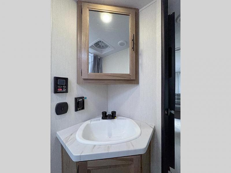 Walk-Around RV King Bed, Rear Storage Rack, Full Bath & Air Fryer