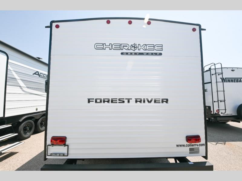 Whether it's a journey that will take you to new locations or a tried-and-true getaway to that favorite and memorable destination, the Forest River Cherokee Grey Wolf travel trailers and toy haulers are going to make the trip worth it every single time! You can travel in confidence with the premium wheel package, seamless roofing membrane with heat reflectivity, Power Gear frame technology with space-saver rail design, and Cherokee back-up camera system. The Cherokee Grey Wolf's interior is highly attractive with its stainless steel kitchen suite package and premium bedding ensemble and comforter. You will also find a black waste tank flush-out kit, an outside shower with hot and cold water, an armored underbelly tank enclosure, and an RV grill quick connect.