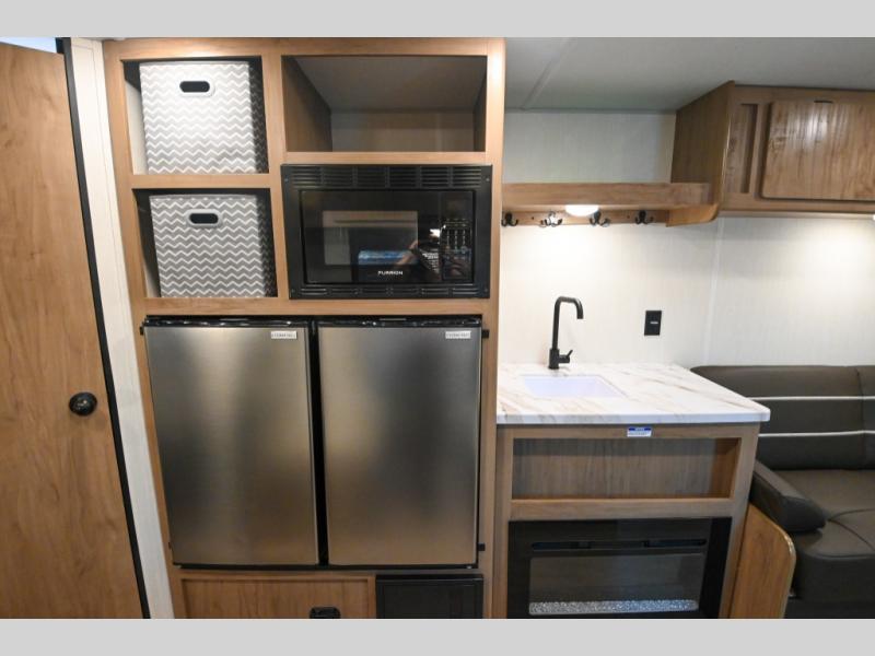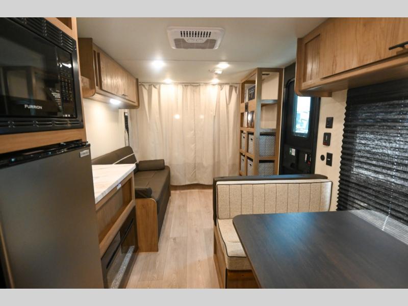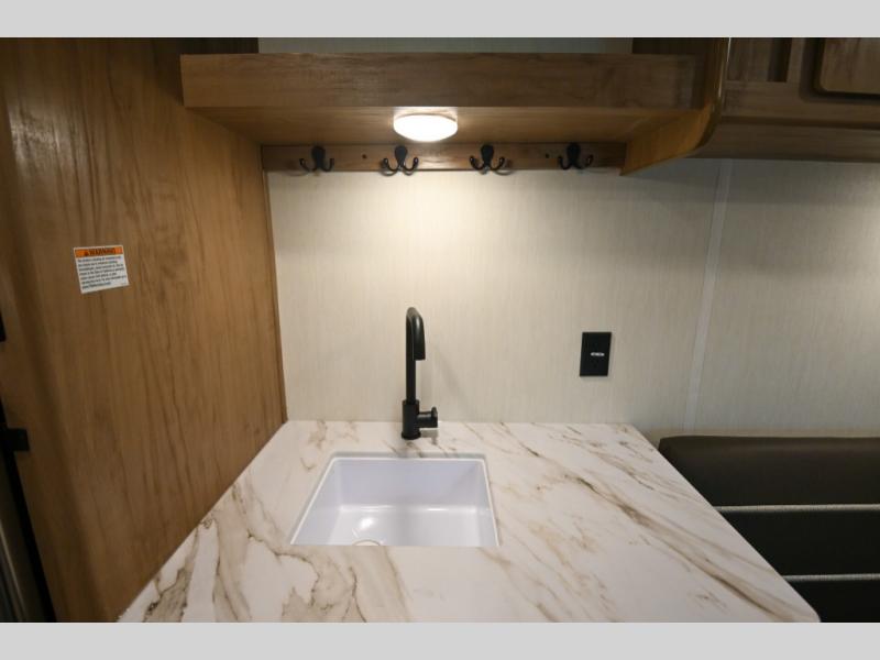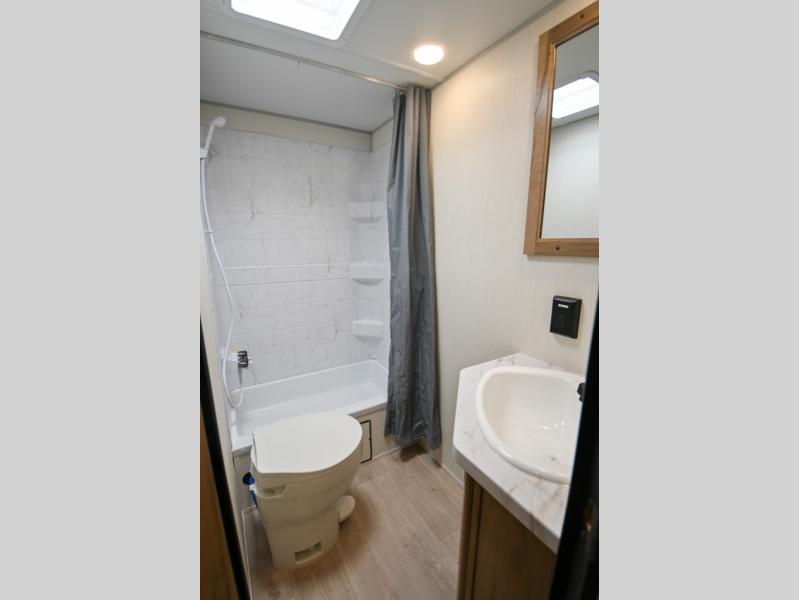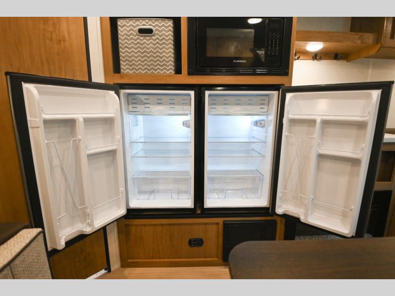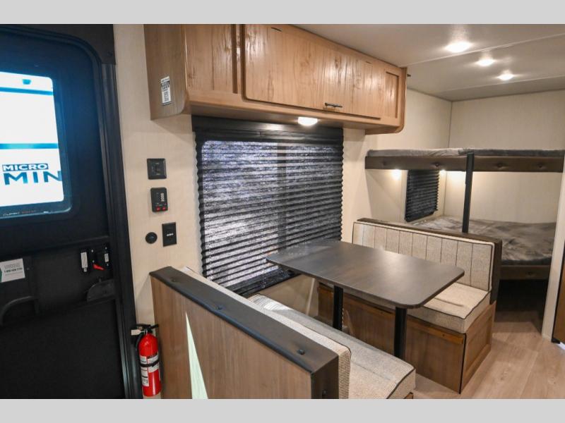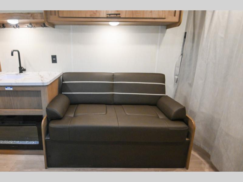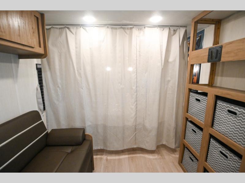 Enjoy family adventures in this bunk model which features sleeping for eight to ten depending on size with a queen bed up front, double-size bunks in the rear curbside corner, and you could even convert the booth dinette and sofa to sleep more. Inside, you will find ample storage with overhead cabinets and a large shelf above the queen bed, plus more shelves next to the entry door, as well as a pantry and storage on either side of the bed. You will appreciate the full bath with tub/shower, toilet, and sink so you can skip the campground facilities. On the outside, you will also find a 12' awning for added outdoor living, and outside storage for your camping gear, plus more!