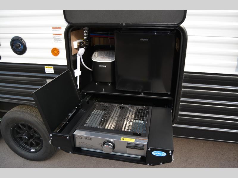 Whether it's a journey that will take you to new locations or a tried-and-true getaway to that favorite and memorable destination, the Forest River Cherokee Grey Wolf travel trailers and toy haulers are going to make the trip worth it every single time! You can travel in confidence with the premium wheel package, seamless roofing membrane with heat reflectivity, Power Gear frame technology with space-saver rail design, and Cherokee back-up camera system. The Cherokee Grey Wolf's interior is highly attractive with its stainless steel kitchen suite package and premium bedding ensemble and comforter. You will also find a black waste tank flush-out kit, an outside shower with hot and cold water, an armored underbelly tank enclosure, and an RV grill quick connect.