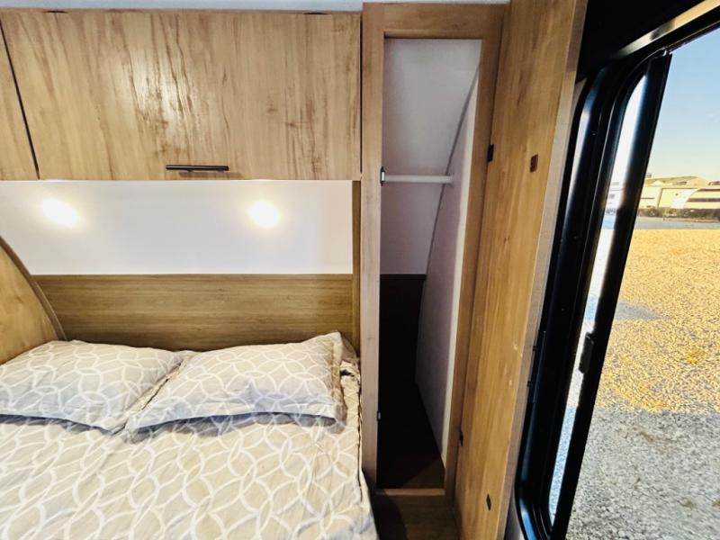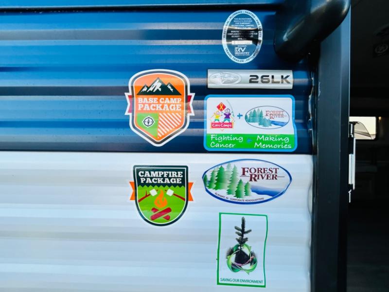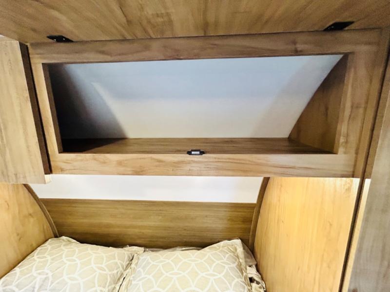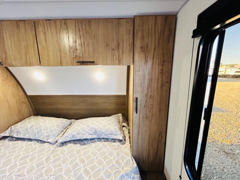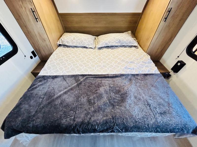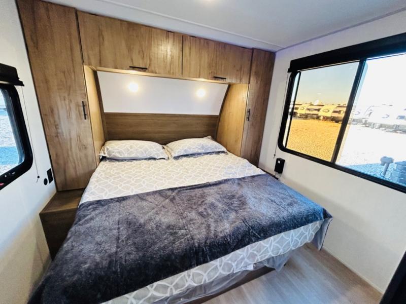 You and your spouse will have a fun time camping in this travel trailer! You will find all of the comforts you need with plenty of livable space including a U-shaped dinette slide. There is also a sofa for more seating when company arrives with a shelf above for your books. The spacious full rear bathroom has a shower with a skylight for more head room and natural lighting. You will find ample storage for clothing in the wardrobes that are above handy nightstands for your personal things on either side of the queen bed in the front private bedroom. There is even an outside mini kitchen and outside TV mount all protected by the 15' awning!