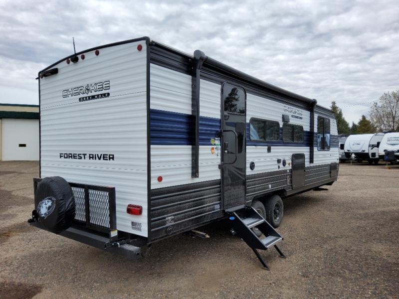 Whether it's a journey that will take you to new locations or a tried-and-true getaway to that favorite and memorable destination, the Forest River Cherokee Grey Wolf travel trailers and toy haulers are going to make the trip worth it every single time! You can travel in confidence with the premium wheel package, seamless roofing membrane with heat reflectivity, Power Gear frame technology with space-saver rail design, and Cherokee back-up camera system. The Cherokee Grey Wolf's interior is highly attractive with its stainless steel kitchen suite package and premium bedding ensemble and comforter. You will also find a black waste tank flush-out kit, an outside shower with hot and cold water, an armored underbelly tank enclosure, and an RV grill quick connect.