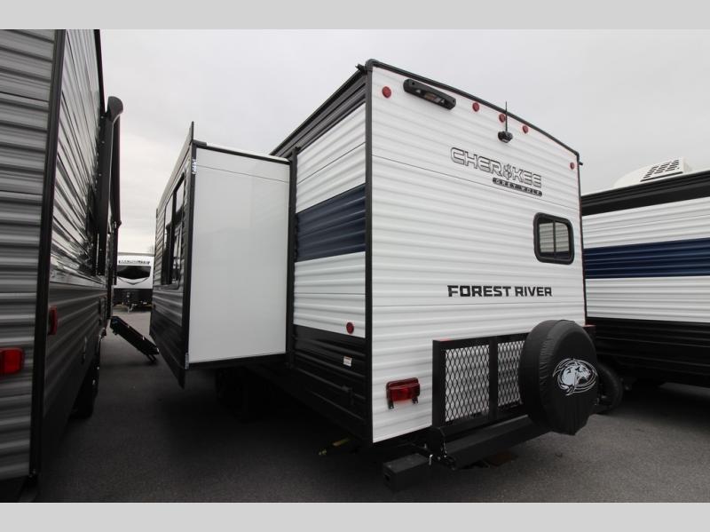 Whether it's a journey that will take you to new locations or a tried-and-true getaway to that favorite and memorable destination, the Forest River Cherokee Grey Wolf travel trailers and toy haulers are going to make the trip worth it every single time! You can travel in confidence with the premium wheel package, seamless roofing membrane with heat reflectivity, Power Gear frame technology with space-saver rail design, and Cherokee back-up camera system. The Cherokee Grey Wolf's interior is highly attractive with its stainless steel kitchen suite package and premium bedding ensemble and comforter. You will also find a black waste tank flush-out kit, an outside shower with hot and cold water, an armored underbelly tank enclosure, and an RV grill quick connect.