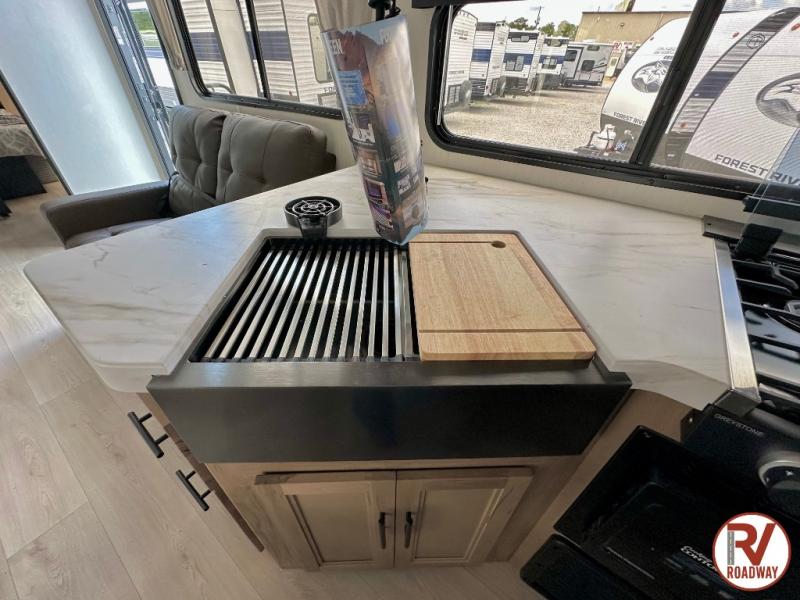 Whether it's a journey that will take you to new locations or a tried-and-true getaway to that favorite and memorable destination, the Forest River Cherokee Grey Wolf travel trailers and toy haulers are going to make the trip worth it every single time! You can travel in confidence with the premium wheel package, seamless roofing membrane with heat reflectivity, Power Gear frame technology with space-saver rail design, and Cherokee back-up camera system. The Cherokee Grey Wolf's interior is highly attractive with its stainless steel kitchen suite package and premium bedding ensemble and comforter. You will also find a black waste tank flush-out kit, an outside shower with hot and cold water, an armored underbelly tank enclosure, and an RV grill quick connect.