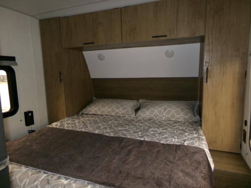 This 30'11" trailer offers a spacious layout and upscale amenities while staying towable by half-ton trucks or SUVs.