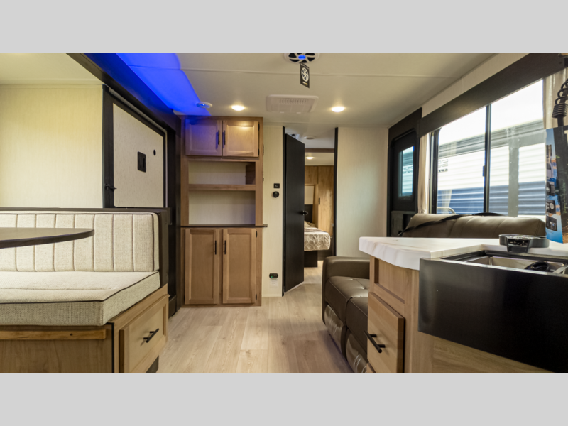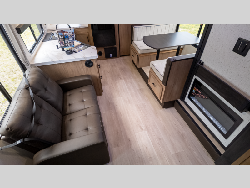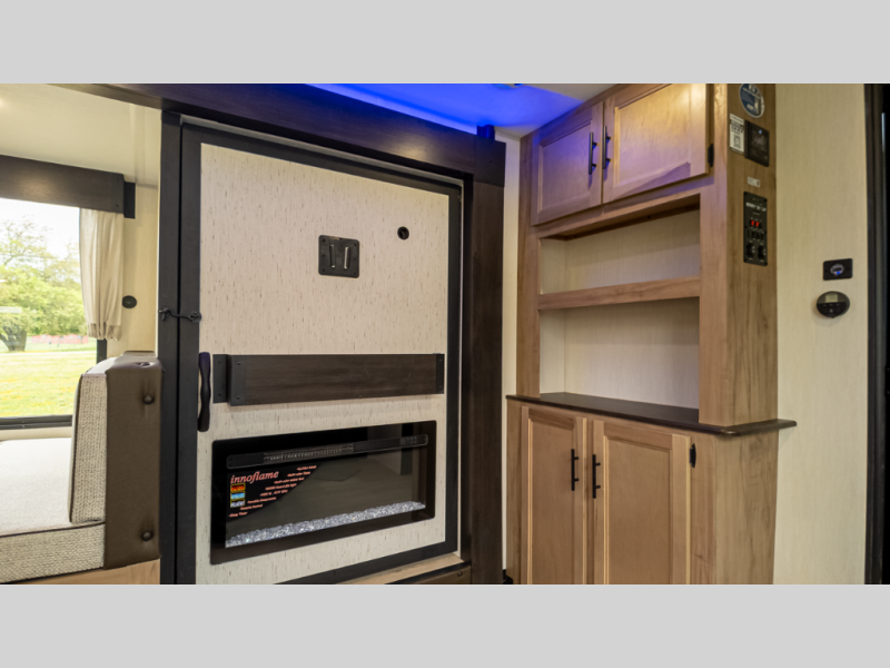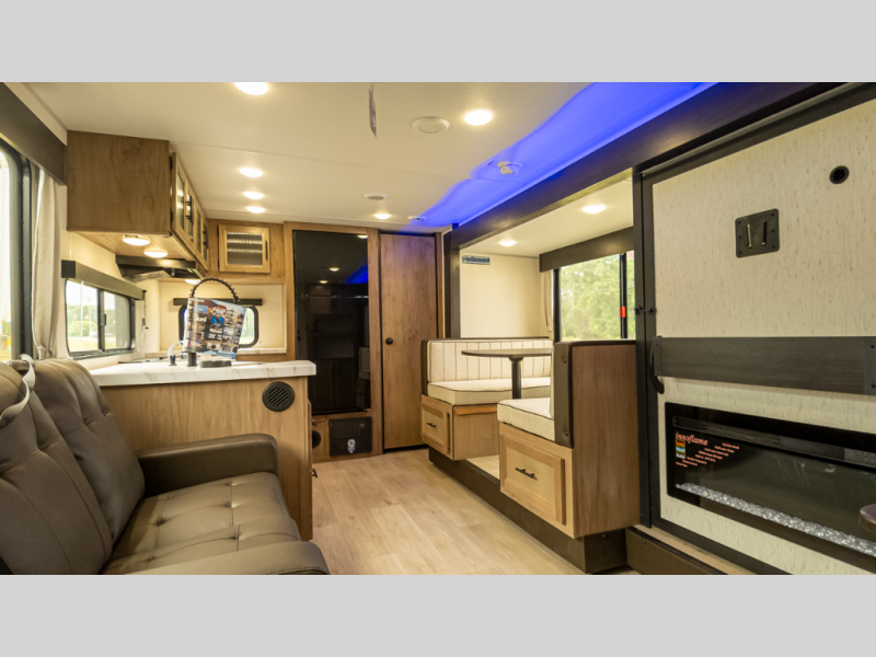 - Ambience: Fireplace, 15 k BTU A/C, USB-C charging, LED lighting & zebra shades