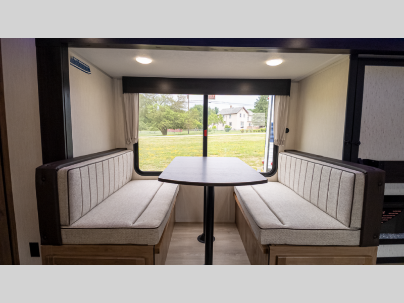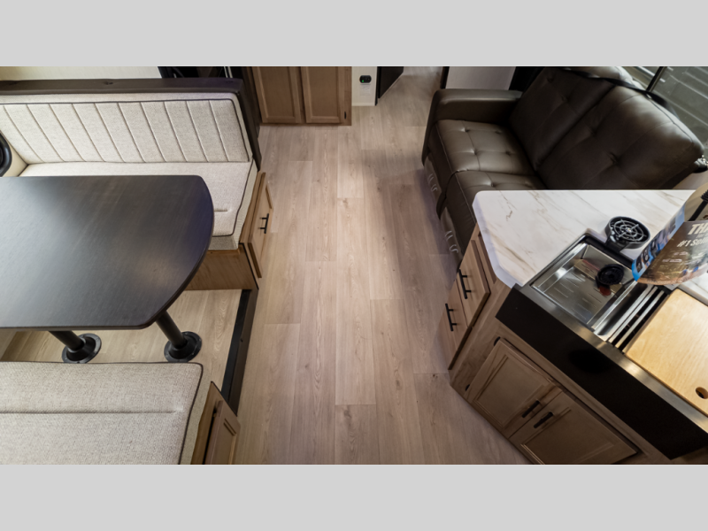 - Comfort & Bedding: RV king bed, convertible sofa/dinette—sleeps 4