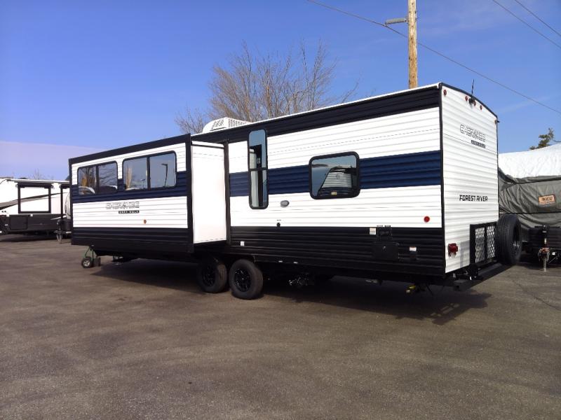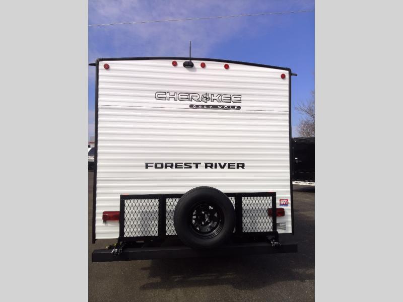 Whether it's a journey that will take you to new locations or a tried-and-true getaway to that favorite and memorable destination, the Forest River Cherokee Grey Wolf travel trailers and toy haulers are going to make the trip worth it every single time! You can travel in confidence with the premium wheel package, seamless roofing membrane with heat reflectivity, Power Gear frame technology with space-saver rail design, and Cherokee back-up camera system. The Cherokee Grey Wolf's interior is highly attractive with its stainless steel kitchen suite package and premium bedding ensemble and comforter. You will also find a black waste tank flush-out kit, an outside shower with hot and cold water, an armored underbelly tank enclosure, and an RV grill quick connect.