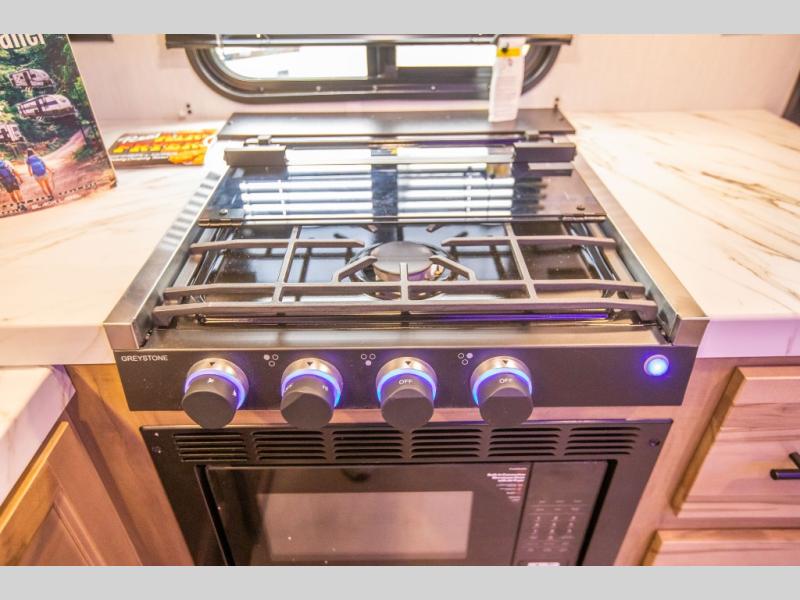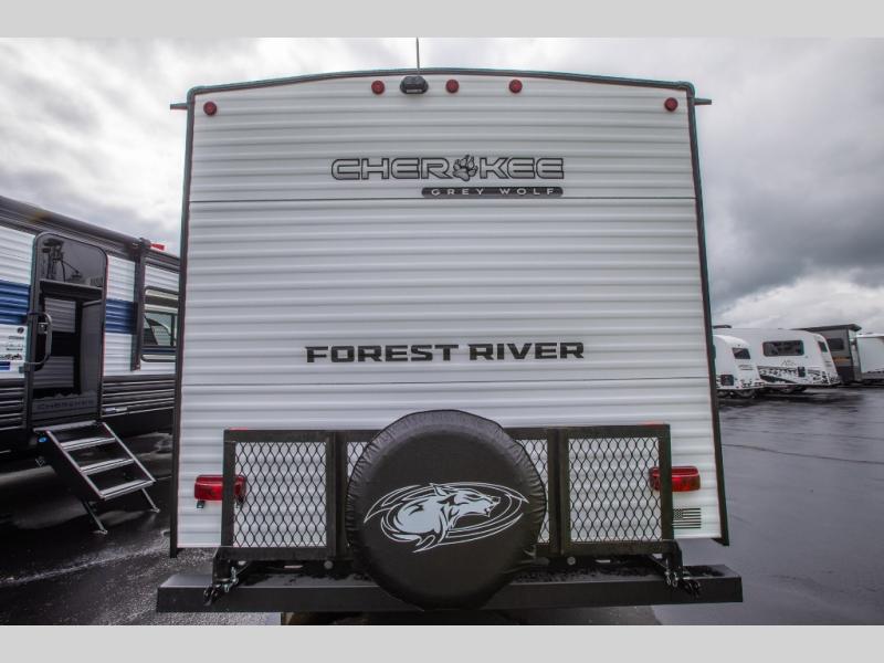 Whether it's a journey that will take you to new locations or a tried-and-true getaway to that favorite and memorable destination, the Forest River Cherokee Grey Wolf travel trailers and toy haulers are going to make the trip worth it every single time! You can travel in confidence with the premium wheel package, seamless roofing membrane with heat reflectivity, Power Gear frame technology with space-saver rail design, and Cherokee back-up camera system. The Cherokee Grey Wolf's interior is highly attractive with its stainless steel kitchen suite package and premium bedding ensemble and comforter. You will also find a black waste tank flush-out kit, an outside shower with hot and cold water, an armored underbelly tank enclosure, and an RV grill quick connect.