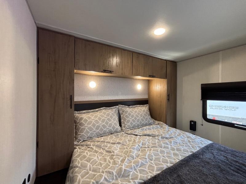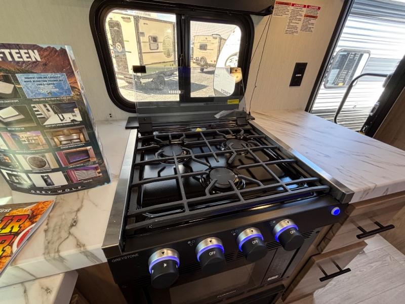 Whether it's a journey that will take you to new locations or a tried-and-true getaway to that favorite and memorable destination, the Forest River Cherokee Grey Wolf travel trailers and toy haulers are going to make the trip worth it every single time! You can travel in confidence with the premium wheel package, seamless roofing membrane with heat reflectivity, Power Gear frame technology with space-saver rail design, and Cherokee back-up camera system. The Cherokee Grey Wolf's interior is highly attractive with its stainless steel kitchen suite package and premium bedding ensemble and comforter. You will also find a black waste tank flush-out kit, an outside shower with hot and cold water, an armored underbelly tank enclosure, and an RV grill quick connect.