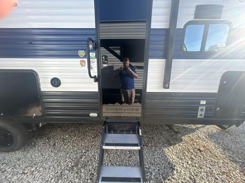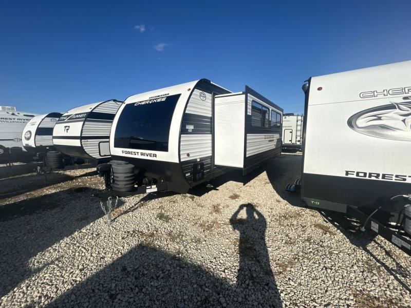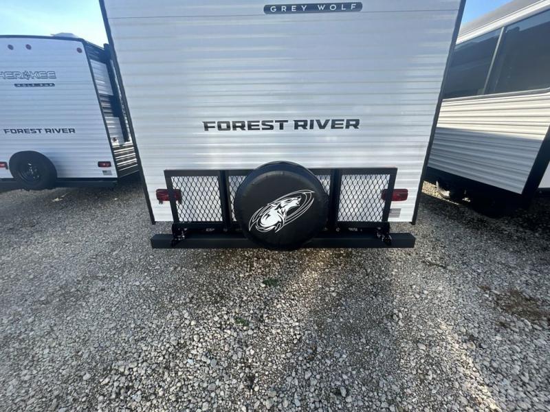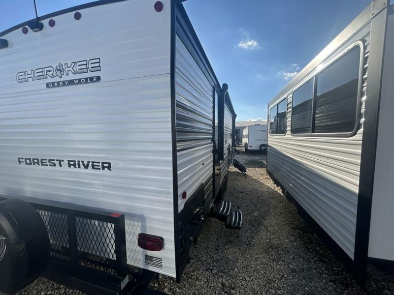 Whether it's a journey that will take you to new locations or a tried-and-true getaway to that favorite and memorable destination, the Forest River Cherokee Grey Wolf travel trailers and toy haulers are going to make the trip worth it every single time! You can travel in confidence with the premium wheel package, seamless roofing membrane with heat reflectivity, Power Gear frame technology with space-saver rail design, and Cherokee back-up camera system. The Cherokee Grey Wolf's interior is highly attractive with its stainless steel kitchen suite package and premium bedding ensemble and comforter. You will also find a black waste tank flush-out kit, an outside shower with hot and cold water, an armored underbelly tank enclosure, and an RV grill quick connect.