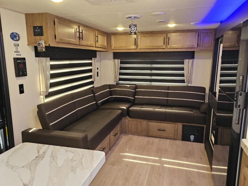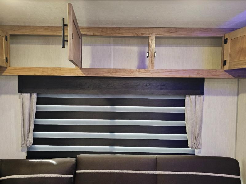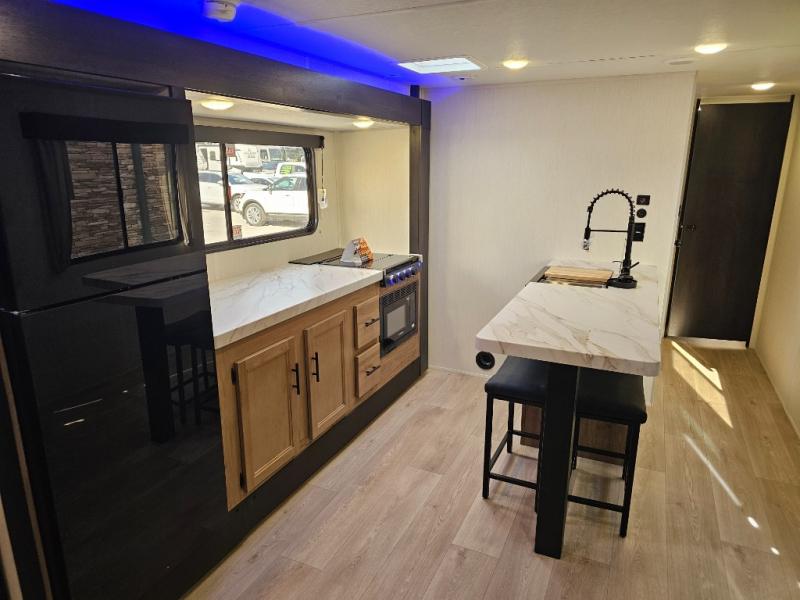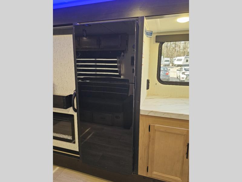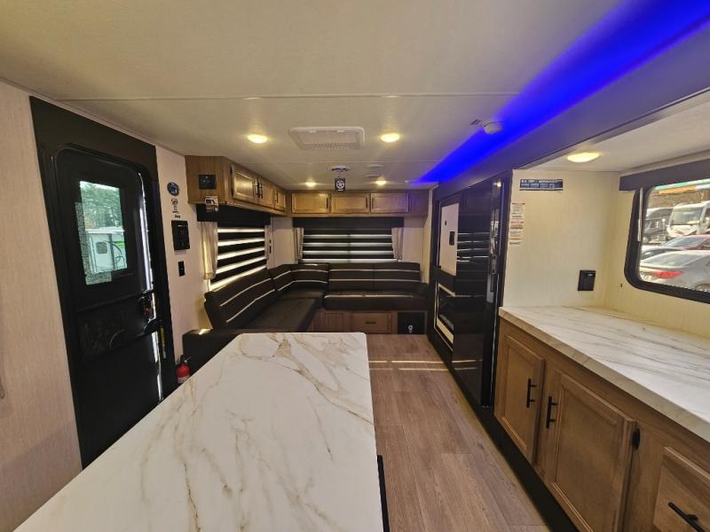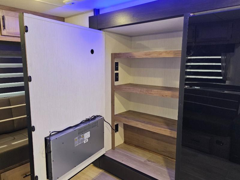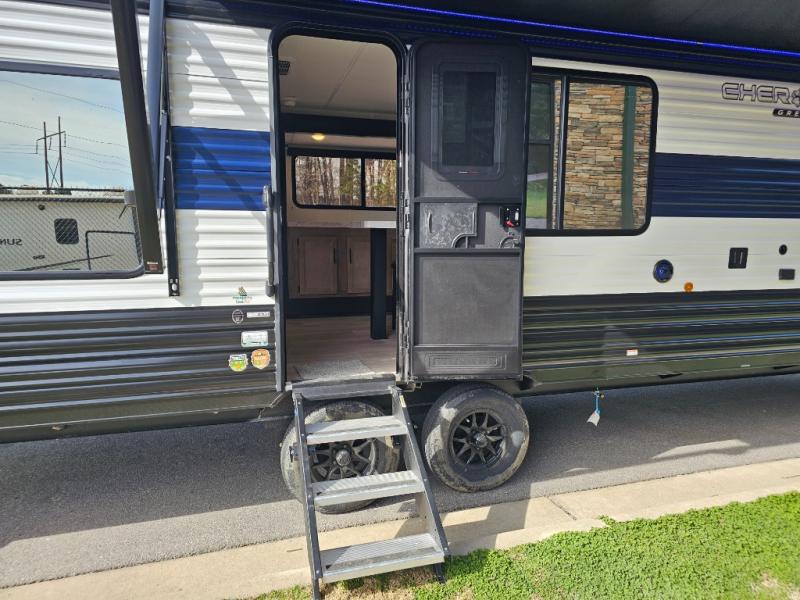 The Cherokee Grey Wolf 27LH is designed with families and couples in mind, offering a roomy layout, modern kitchen amenities, and the comforts of home while on the road. With a fireplace, hidden pantry, and an RV king bed, this model ensures every trip is as enjoyable as the destination.