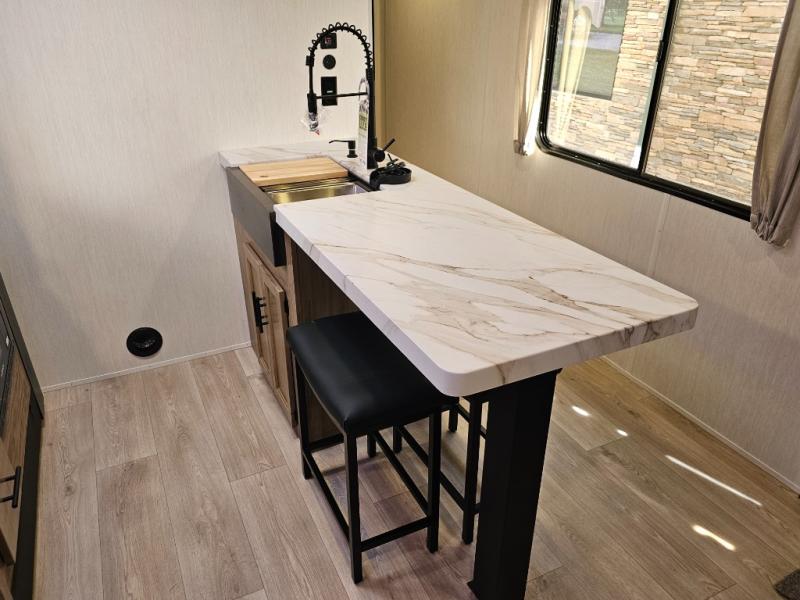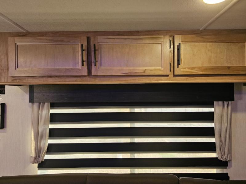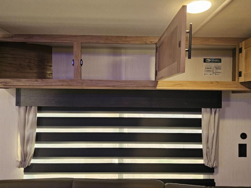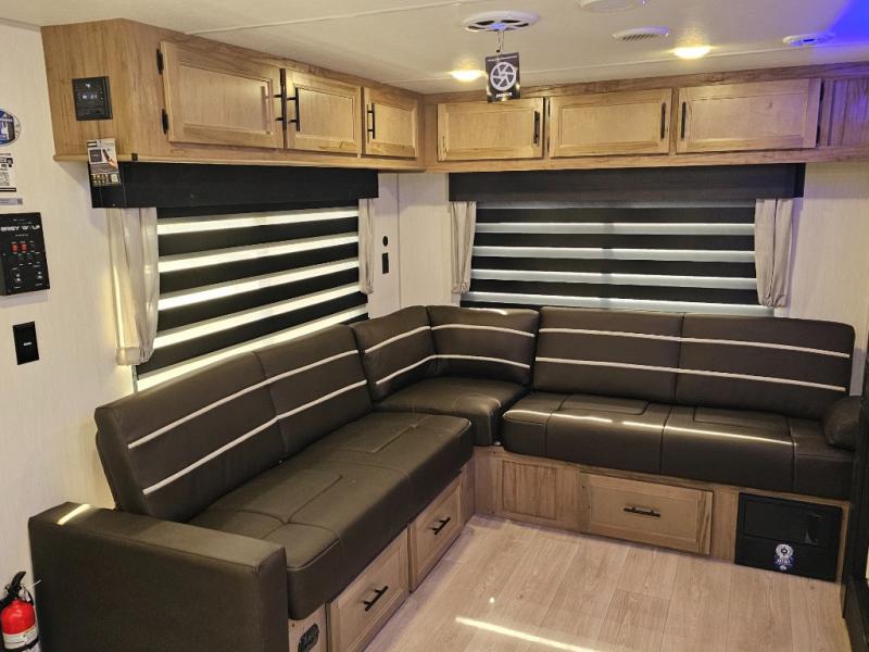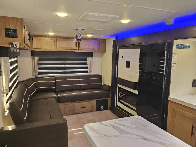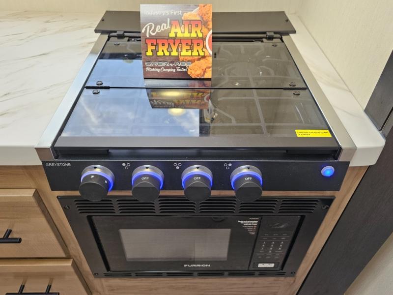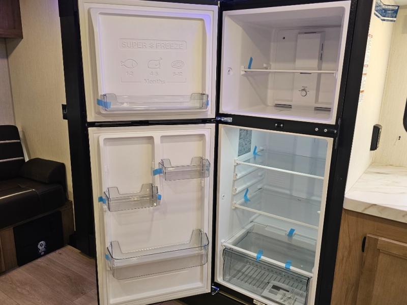 The Cherokee Grey Wolf 27LH is designed with families and couples in mind, offering a roomy layout, modern kitchen amenities, and the comforts of home while on the road. With a fireplace, hidden pantry, and an RV king bed, this model ensures every trip is as enjoyable as the destination.