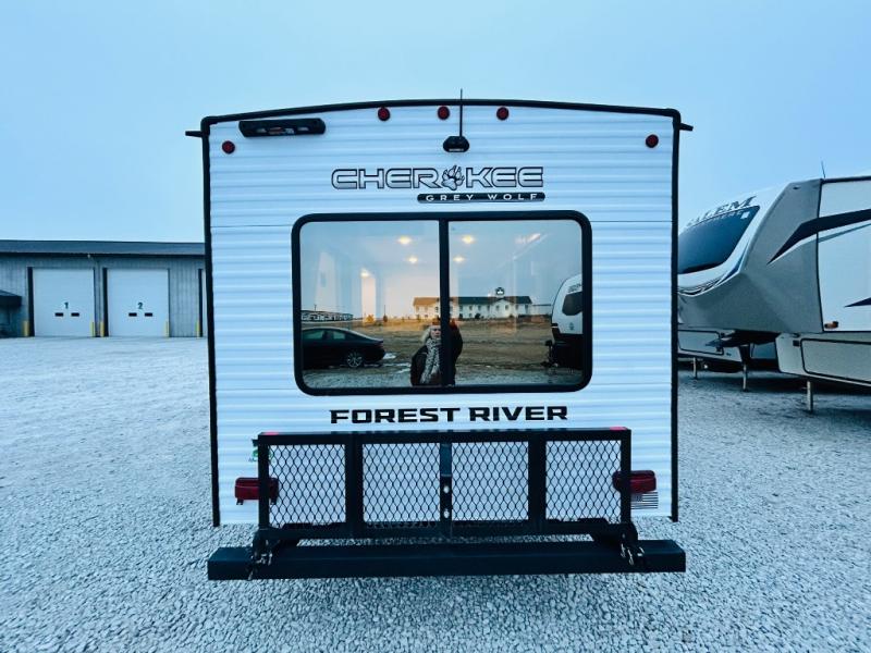 Whether it's a journey that will take you to new locations or a tried-and-true getaway to that favorite and memorable destination, the Forest River Cherokee Grey Wolf travel trailers and toy haulers are going to make the trip worth it every single time! You can travel in confidence with the premium wheel package, seamless roofing membrane with heat reflectivity, Power Gear frame technology with space-saver rail design, and Cherokee back-up camera system. The Cherokee Grey Wolf's interior is highly attractive with its stainless steel kitchen suite package and premium bedding ensemble and comforter. You will also find a black waste tank flush-out kit, an outside shower with hot and cold water, an armored underbelly tank enclosure, and an RV grill quick connect.