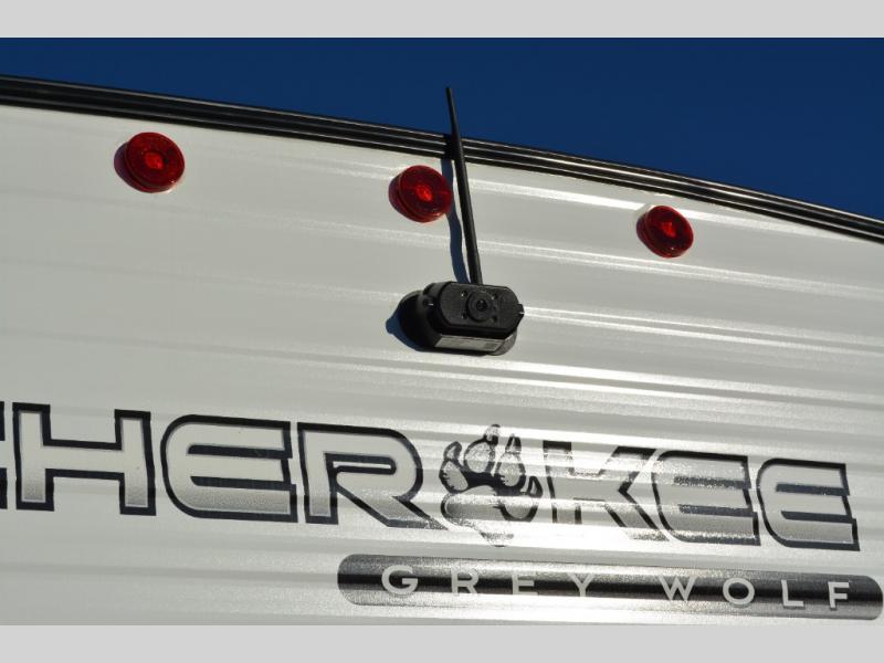 Whether it's a journey that will take you to new locations or a tried-and-true getaway to that favorite and memorable destination, the Forest River Cherokee Grey Wolf travel trailers and toy haulers are going to make the trip worth it every single time! You can travel in confidence with the premium wheel package, seamless roofing membrane with heat reflectivity, Power Gear frame technology with space-saver rail design, and Cherokee back-up camera system. The Cherokee Grey Wolf's interior is highly attractive with its stainless steel kitchen suite package and premium bedding ensemble and comforter. You will also find a black waste tank flush-out kit, an outside shower with hot and cold water, an armored underbelly tank enclosure, and an RV grill quick connect.