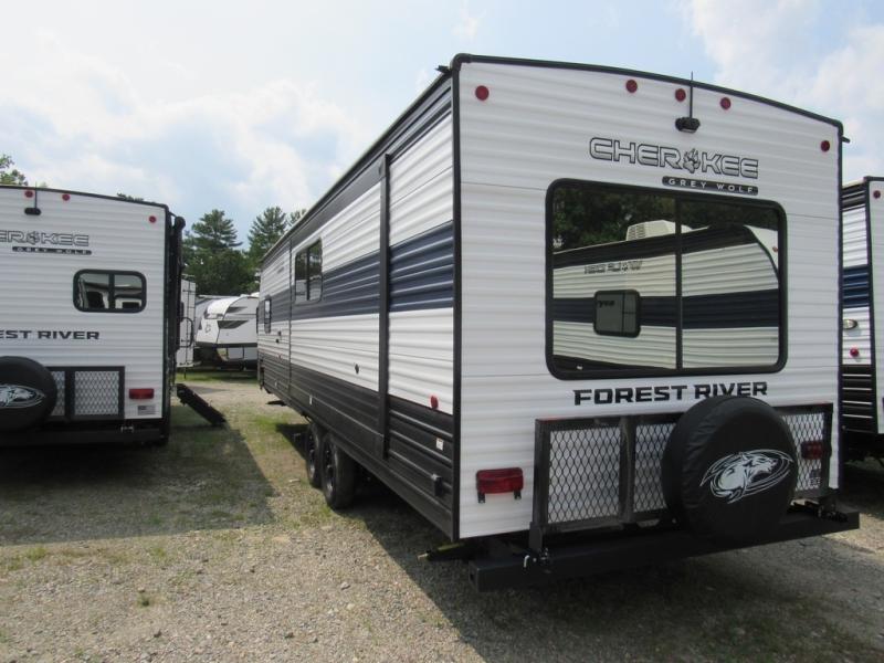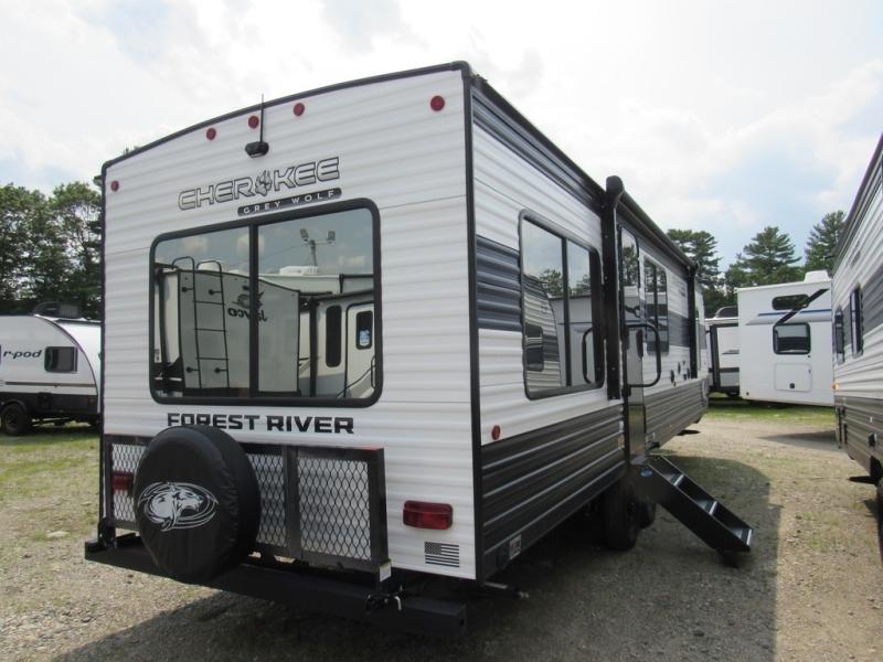 Whether it's a journey that will take you to new locations or a tried-and-true getaway to that favorite and memorable destination, the Forest River Cherokee Grey Wolf travel trailers and toy haulers are going to make the trip worth it every single time! You can travel in confidence with the premium wheel package, seamless roofing membrane with heat reflectivity, Power Gear frame technology with space-saver rail design, and Cherokee back-up camera system. The Cherokee Grey Wolf's interior is highly attractive with its stainless steel kitchen suite package and premium bedding ensemble and comforter. You will also find a black waste tank flush-out kit, an outside shower with hot and cold water, an armored underbelly tank enclosure, and an RV grill quick connect.