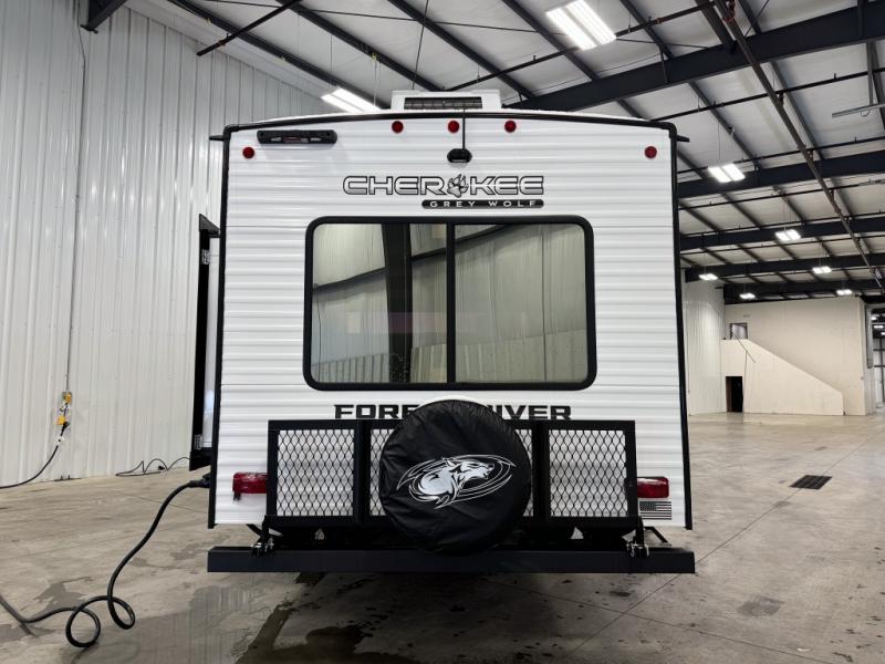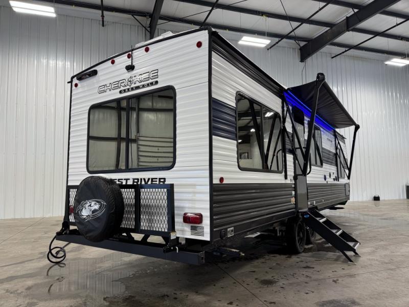 Whether it's a journey that will take you to new locations or a tried-and-true getaway to that favorite and memorable destination, the Forest River Cherokee Grey Wolf travel trailers and toy haulers are going to make the trip worth it every single time! You can travel in confidence with the premium wheel package, seamless roofing membrane with heat reflectivity, Power Gear frame technology with space-saver rail design, and Cherokee back-up camera system. The Cherokee Grey Wolf's interior is highly attractive with its stainless steel kitchen suite package and premium bedding ensemble and comforter. You will also find a black waste tank flush-out kit, an outside shower with hot and cold water, an armored underbelly tank enclosure, and an RV grill quick connect.
