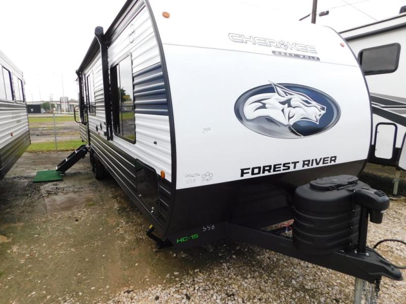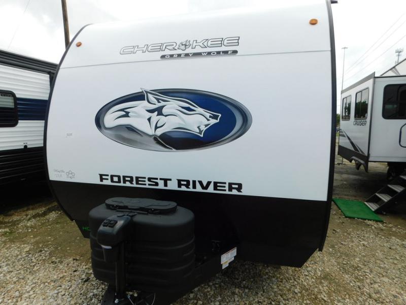 Whether it's a journey that will take you to new locations or a tried-and-true getaway to that favorite and memorable destination, the Forest River Cherokee Grey Wolf travel trailers and toy haulers are going to make the trip worth it every single time! You can travel in confidence with the premium wheel package, seamless roofing membrane with heat reflectivity, Power Gear frame technology with space-saver rail design, and Cherokee back-up camera system. The Cherokee Grey Wolf's interior is highly attractive with its stainless steel kitchen suite package and premium bedding ensemble and comforter. You will also find a black waste tank flush-out kit, an outside shower with hot and cold water, an armored underbelly tank enclosure, and an RV grill quick connect.