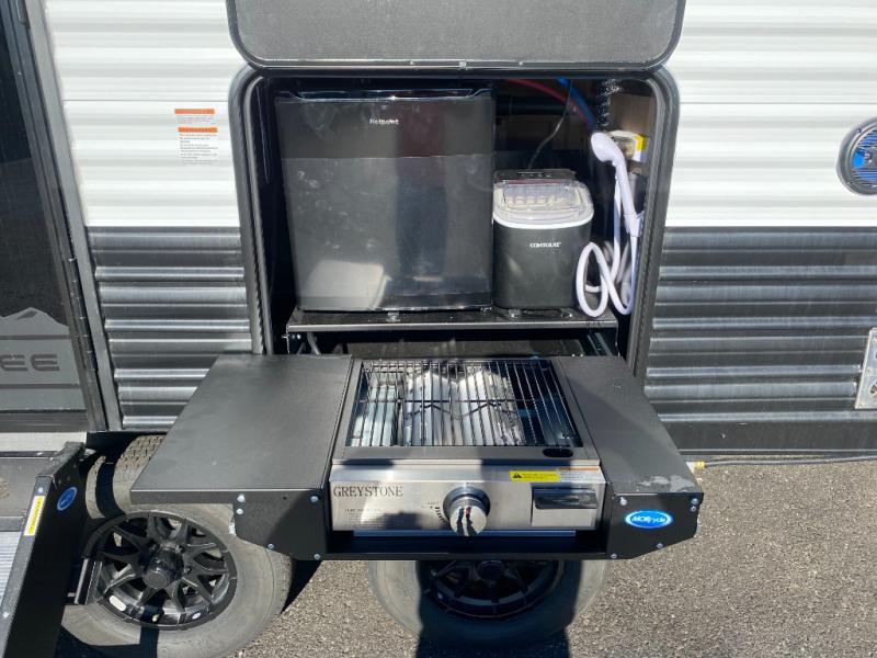 Whether it's a journey that will take you to new locations or a tried-and-true getaway to that favorite and memorable destination, the Forest River Cherokee Grey Wolf travel trailers and toy haulers are going to make the trip worth it every single time! You can travel in confidence with the premium wheel package, seamless roofing membrane with heat reflectivity, Power Gear frame technology with space-saver rail design, and Cherokee back-up camera system. The Cherokee Grey Wolf's interior is highly attractive with its stainless steel kitchen suite package and premium bedding ensemble and comforter. You will also find a black waste tank flush-out kit, an outside shower with hot and cold water, an armored underbelly tank enclosure, and an RV grill quick connect.