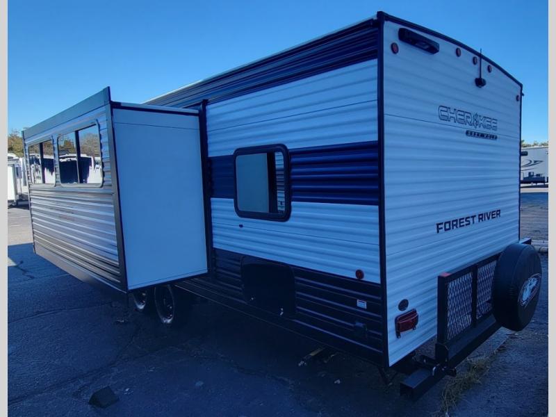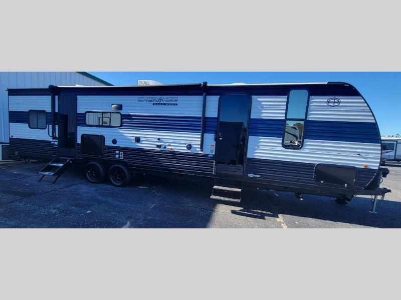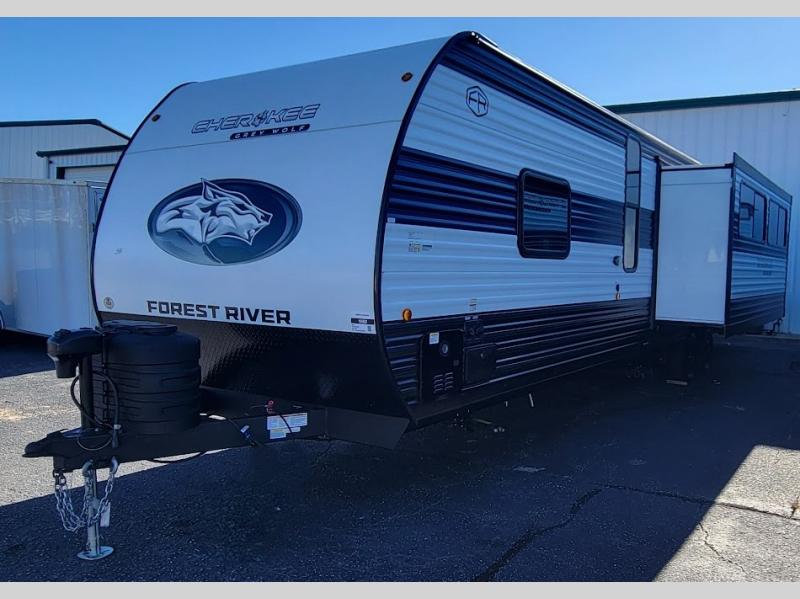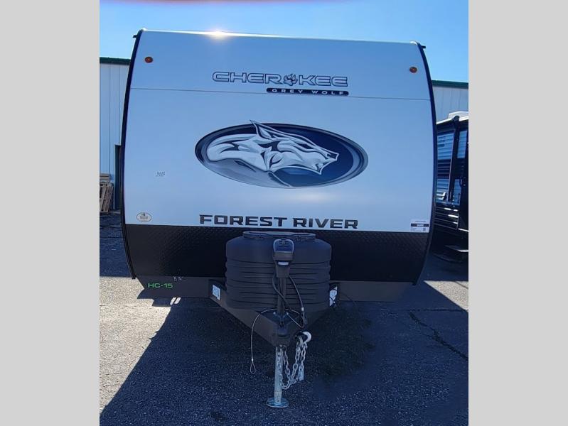 Whether it's a journey that will take you to new locations or a tried-and-true getaway to that favorite and memorable destination, the Forest River Cherokee Grey Wolf travel trailers and toy haulers are going to make the trip worth it every single time! You can travel in confidence with the premium wheel package, seamless roofing membrane with heat reflectivity, Power Gear frame technology with space-saver rail design, and Cherokee back-up camera system. The Cherokee Grey Wolf's interior is highly attractive with its stainless steel kitchen suite package, premium bedding ensemble and comforter, and 8" ceiling-mounted subwoofer with accent lighting. You will also find a black waste tank flush-out kit, an outside shower with hot and cold water, an armored underbelly tank enclosure, a power tongue jack, and an RV grill quick connect.