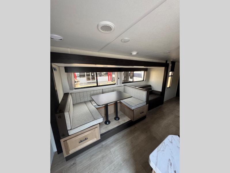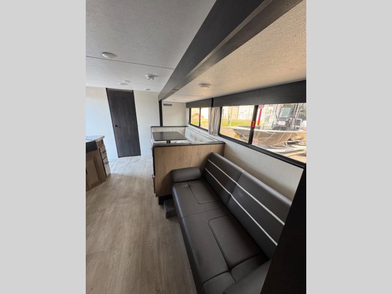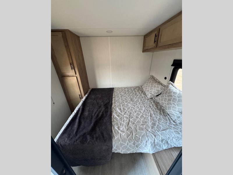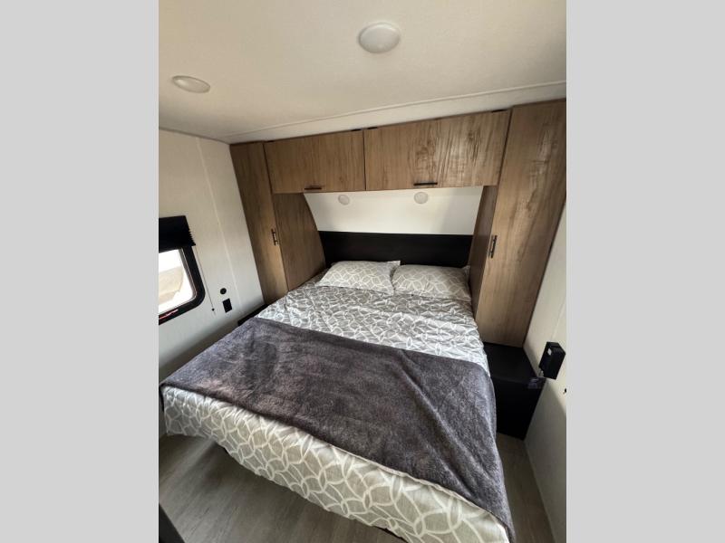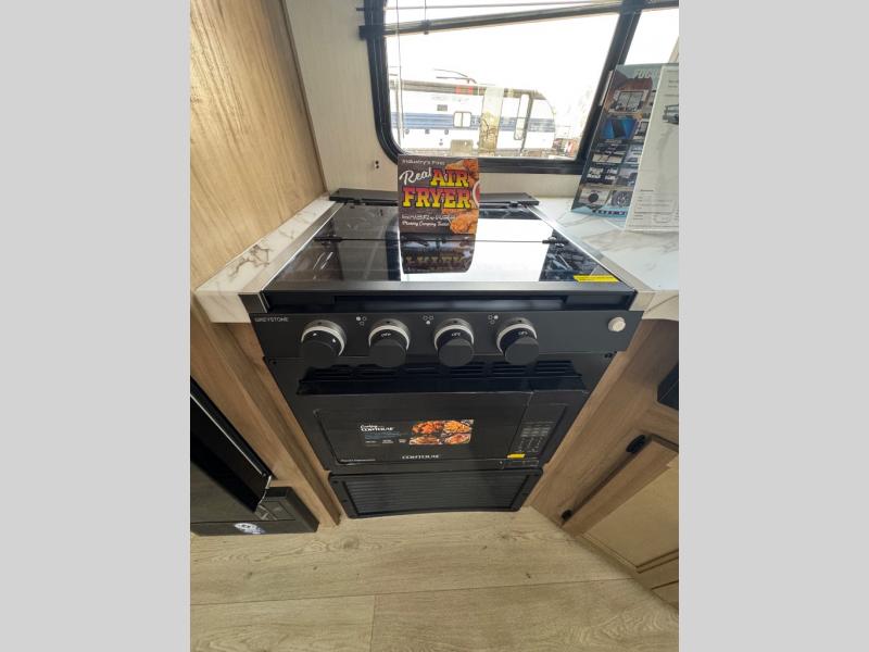You will have such a great time making memories in this Cherokee Grey Wolf travel trailer! This amazing trailer not only has a master suite up front, but it also has another private bedroom in the back which means that both you and the rest of your fellow campers will sleep peacefully and privately. There is also a U-shaped dinette and sofa on the large slide in the main living area so that if you have anyone else traveling with you, they can also have a place to sleep. A full kitchen, complete with an air fryer will help you whip up a hearty meal to replenish your tired bodies, and a pantry will hold onto your snacks and sweets for later.
