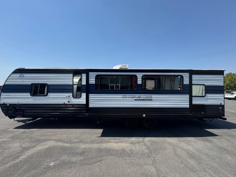 Whether it's a journey that will take you to new locations or a tried-and-true getaway to that favorite and memorable destination, the Forest River Cherokee Grey Wolf travel trailers and toy haulers are going to make the trip worth it every single time! You can travel in confidence with the premium wheel package, seamless roofing membrane with heat reflectivity, Power Gear frame technology with space-saver rail design, and Cherokee back-up camera system. The Cherokee Grey Wolf's interior is highly attractive with its stainless steel kitchen suite package and premium bedding ensemble and comforter. You will also find a black waste tank flush-out kit, an outside shower with hot and cold water, an armored underbelly tank enclosure, and an RV grill quick connect.