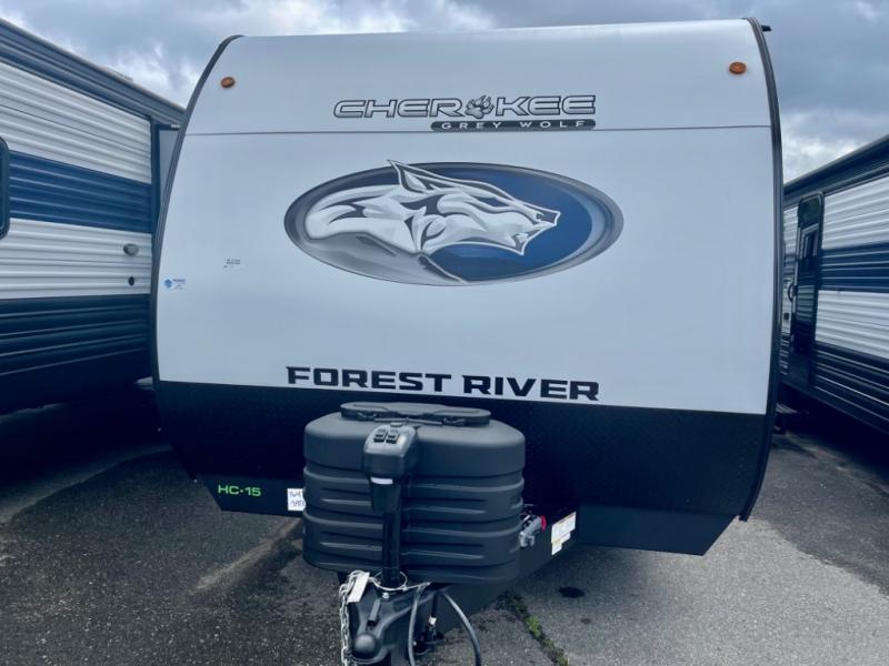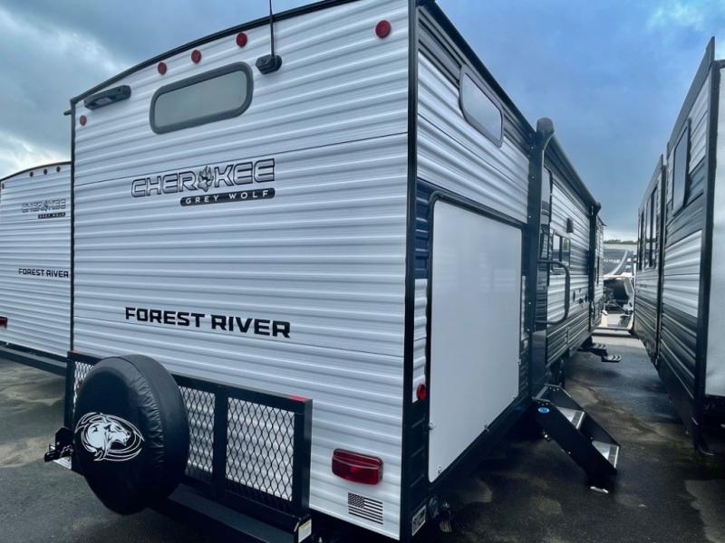Whether it's a journey that will take you to new locations or a tried-and-true getaway to that favorite and memorable destination, the Forest River Cherokee Grey Wolf travel trailers and toy haulers are going to make the trip worth it every single time! You can travel in confidence with the premium wheel package, seamless roofing membrane with heat reflectivity, Power Gear frame technology with space-saver rail design, and Cherokee back-up camera system. The Cherokee Grey Wolf's interior is highly attractive with its stainless steel kitchen suite package and premium bedding ensemble and comforter. You will also find a black waste tank flush-out kit, an outside shower with hot and cold water, an armored underbelly tank enclosure, and an RV grill quick connect.