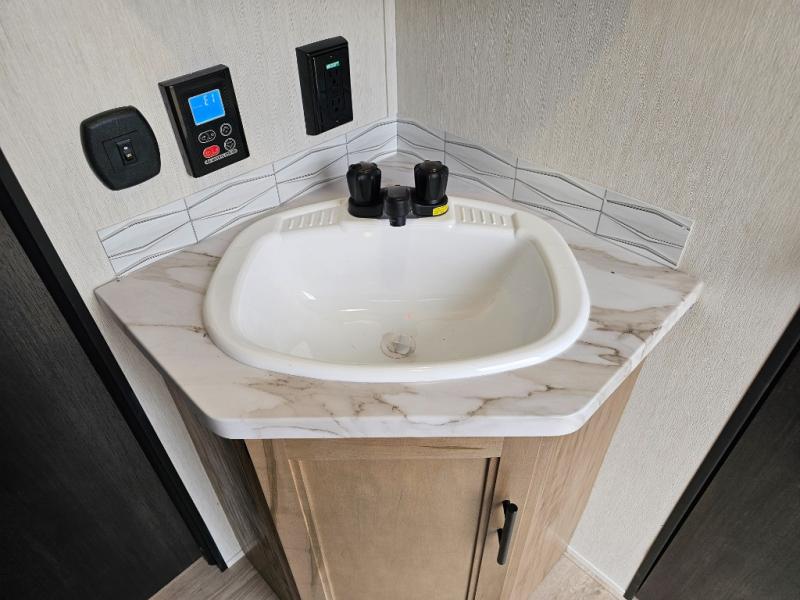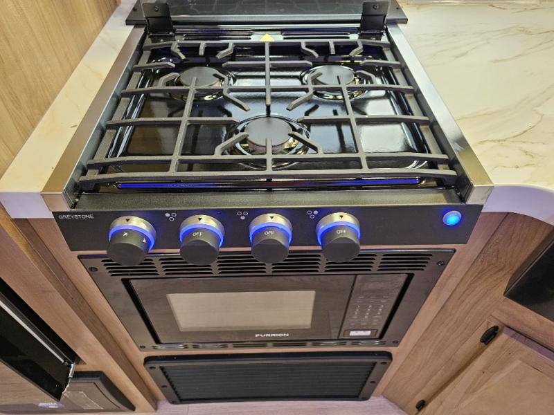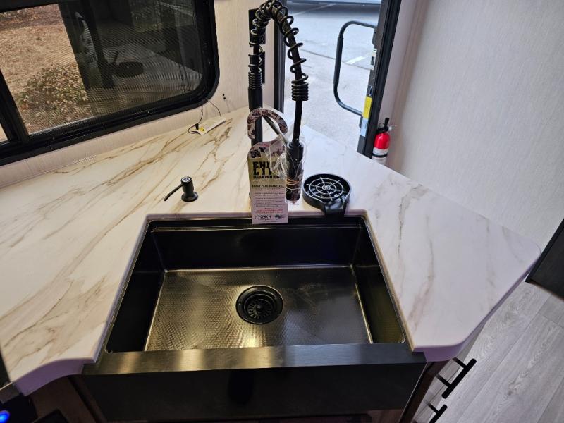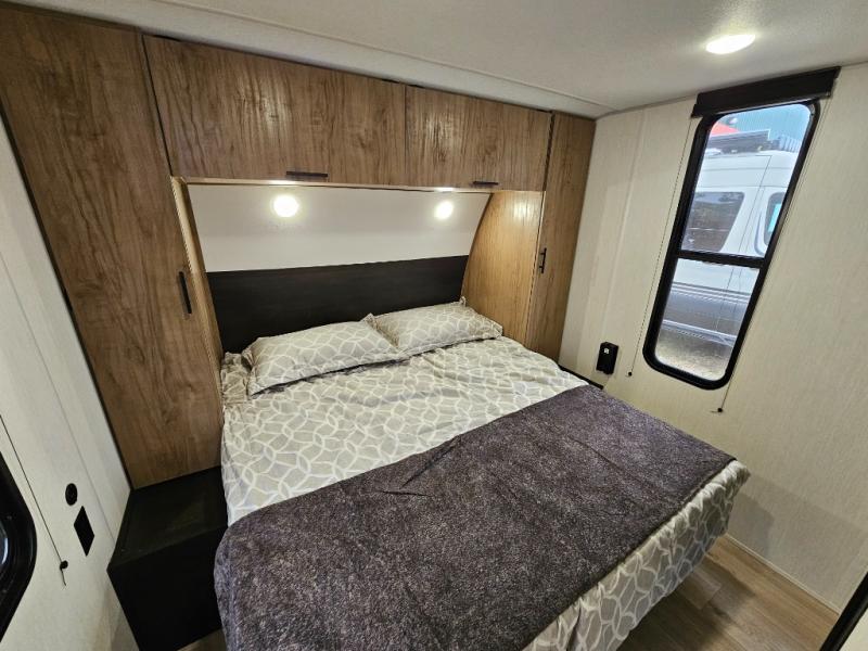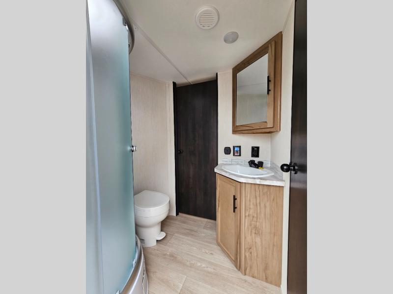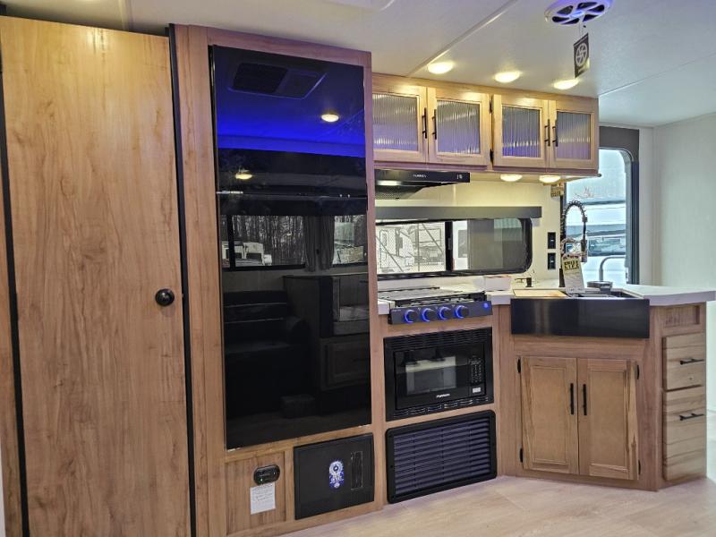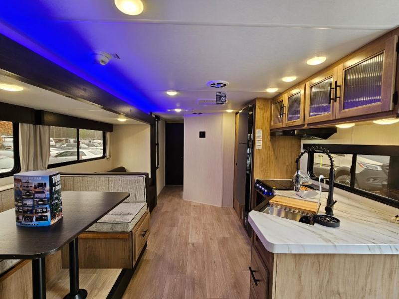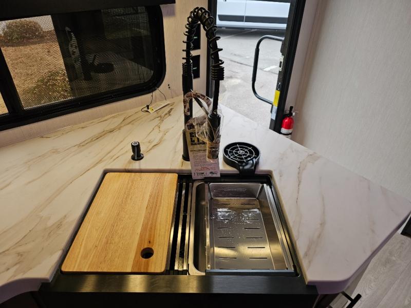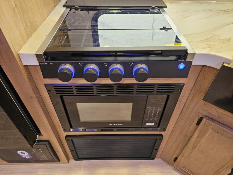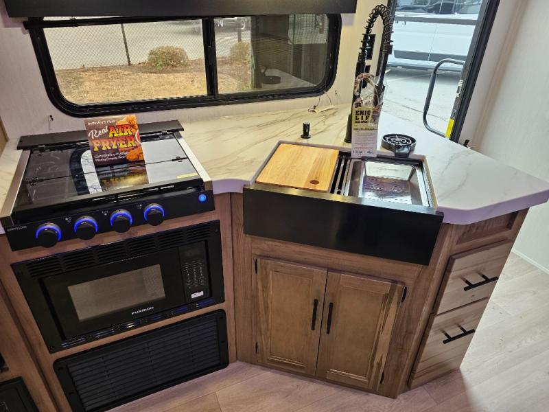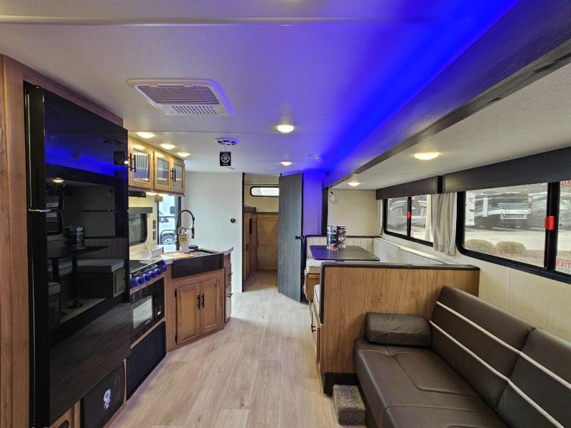 The 29TE is a family-focused travel trailer with room to spare, offering a private bunkhouse for the kids, an RV king master suite for the adults, and a fully equipped kitchen for everyone to enjoy. Add in the dual entry convenience, outdoor bar & grill, and abundant storage, and you’ve got the perfect RV for both short trips and extended vacations.