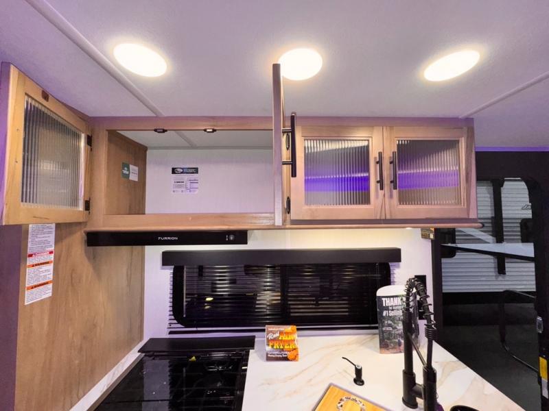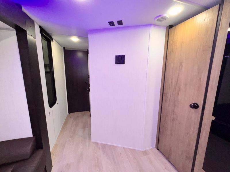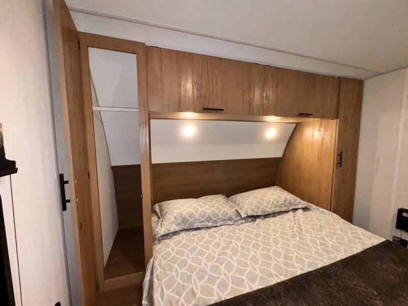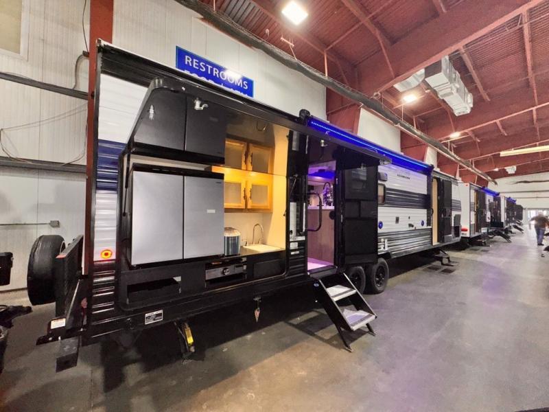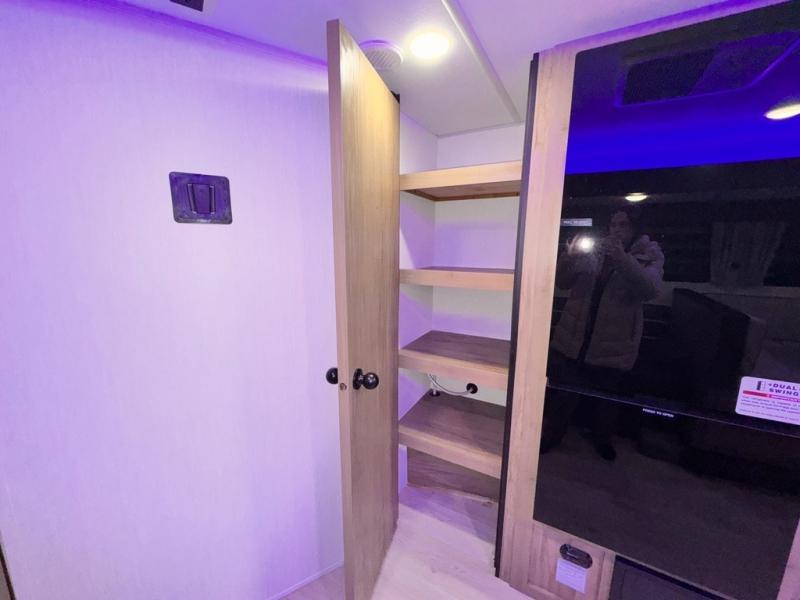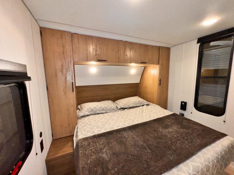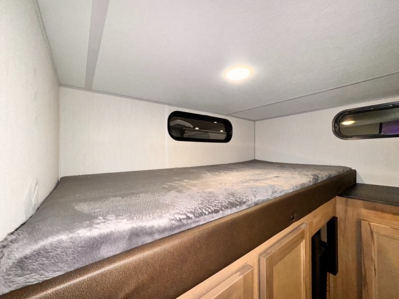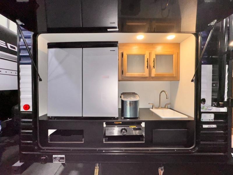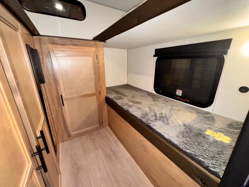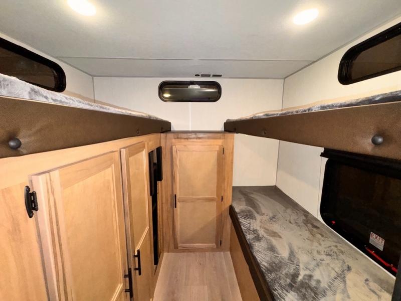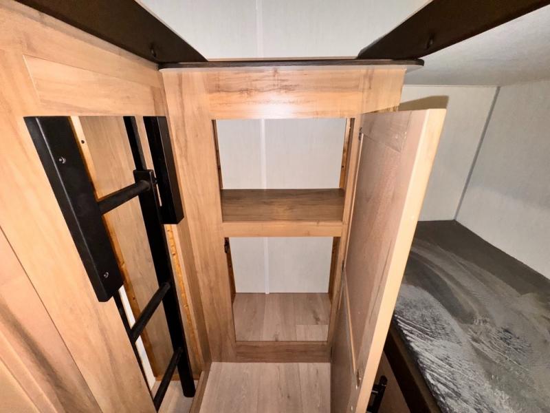 Your larger family will love spending weekends away with this Cherokee Grey Wolf travel trailer as their home away from home. This model offers lots of sleeping space with three bunk beds in the rear private bunkhouse. In the front, there is a master suite with wardrobes and nightstands on either side of the RV king bed, and it even has private access to the dual-entry bath. The two entry doors will make accessing the trailer easy for everyone, and you will appreciate the abundant storage throughout this unit including large overhead cabinets, a spacious pantry, and numerous outside storage compartments for all of your outdoor gear. There's even an outside bar & grill!