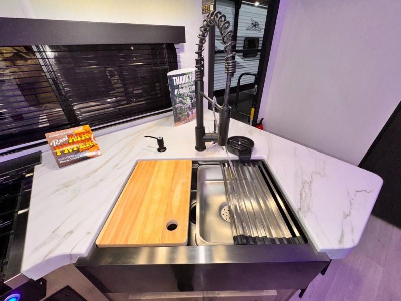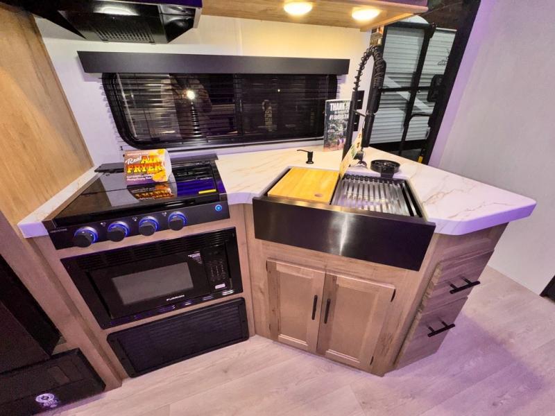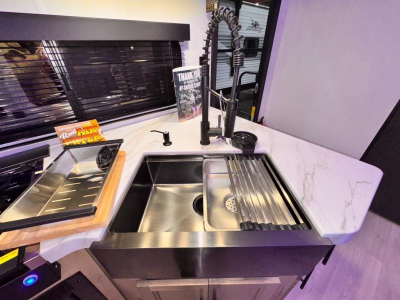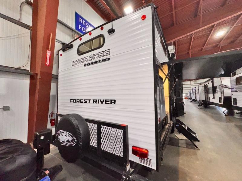 Whether it's a journey that will take you to new locations or a tried-and-true getaway to that favorite and memorable destination, the Forest River Cherokee Grey Wolf travel trailers and toy haulers are going to make the trip worth it every single time! You can travel in confidence with the premium wheel package, seamless roofing membrane with heat reflectivity, Power Gear frame technology with space-saver rail design, and Cherokee back-up camera system. The Cherokee Grey Wolf's interior is highly attractive with its stainless steel kitchen suite package and premium bedding ensemble and comforter. You will also find a black waste tank flush-out kit, an outside shower with hot and cold water, an armored underbelly tank enclosure, and an RV grill quick connect.