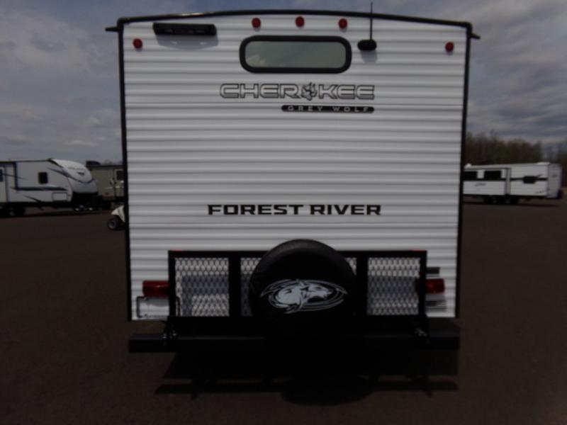 Whether it's a journey that will take you to new locations or a tried-and-true getaway to that favorite and memorable destination, the Forest River Cherokee Grey Wolf travel trailers and toy haulers are going to make the trip worth it every single time! You can travel in confidence with the premium wheel package, seamless roofing membrane with heat reflectivity, Power Gear frame technology with space-saver rail design, and Cherokee back-up camera system. The Cherokee Grey Wolf's interior is highly attractive with its stainless steel kitchen suite package and premium bedding ensemble and comforter. You will also find a black waste tank flush-out kit, an outside shower with hot and cold water, an armored underbelly tank enclosure, and an RV grill quick connect.